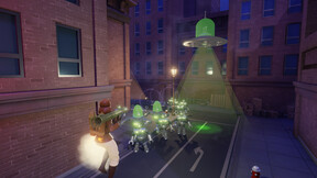 [h1]НЕПЛОХО![/h1] Видео версия обзора: https://youtu.be/WtFf6bC2MQ4 Перед нами можно сказать милый tower defence (жанр такой) на 4-х игроков. Симпатичная графика с технологией cel-shading на Unreal Engine 4 и весьма бодрый геймплей. Главная задача - отбивать толпы инопланетян, которые на самом деле скорее роботы нежели внеземная цивилизация. Летающие тарелки, бластеры и тематика альтернативных 50-60-х придаёт свой лёгкий шарм. Игра напоминает сразу несколько похожих проектов, начиная от похожего [b]Orcs must die[/b] и заканчивая ныне закрытым [b]Battlefield Heroes.[/b] Ничего супер-пуперского тут нет, просто хороший отстрел супостатов вместе с друзьями. Довольно приличное обилие оружия, целых 4 агента со своими способностями и с десяток различных ловушек, от простых ботов солдат, до крупнокалиберных пушек. Присутствует тактика, реально думаешь какое оружие взять, что за ловушки ставить в конкретной миссии. К сожалению, игра вышла тихо и почти незаметно, поэтому играют очень мало людей. Найти напарников трудно, если надумали брать, покупайте минимум с другом, а лучше вчетвером. Из минусов - ужасный онлайн! Не показывает пинг, серваки, нет обычного чата, сервера лагают, игру находит случайно, и вы никогда не знаете к кому заходите. Если ждать пока вам придут помочь пройти уровень где вы застряли, то можно состариться. Оружие нужно постоянно перезаряжать и это жутко утомляет. Перебор со сложностью, даже на нормале пройти все уровни в 4-ом очень сложно. Что творится на харде или insane даже знать не хочу. В целом, при такой цене отличная покупка на пару вечеров. Оценка соло [b]7[/b], если в коопе с друзьями то [b]8[/b] + Если вам понравился обзор, подписывайтесь на мою кураторскую страничку, где я постоянно рекомендую самые разные игры! Присоединяйтесь к каналу на YouTube, а также вступайте в группу Вконтакте, там публикую заметки об игровых новостях и кино. Читайте, смотрите, комментируйте и зовите друзей! [url=http://store.steampowered.com/curator/6866569/]Все мои обзоры [/url] [url=http://www.youtube.com/c/Pu4eglaz]Канал YouTube[/url] [url=https://vk.com/pu4eglaz_group]Группа Вконтакте[/url]