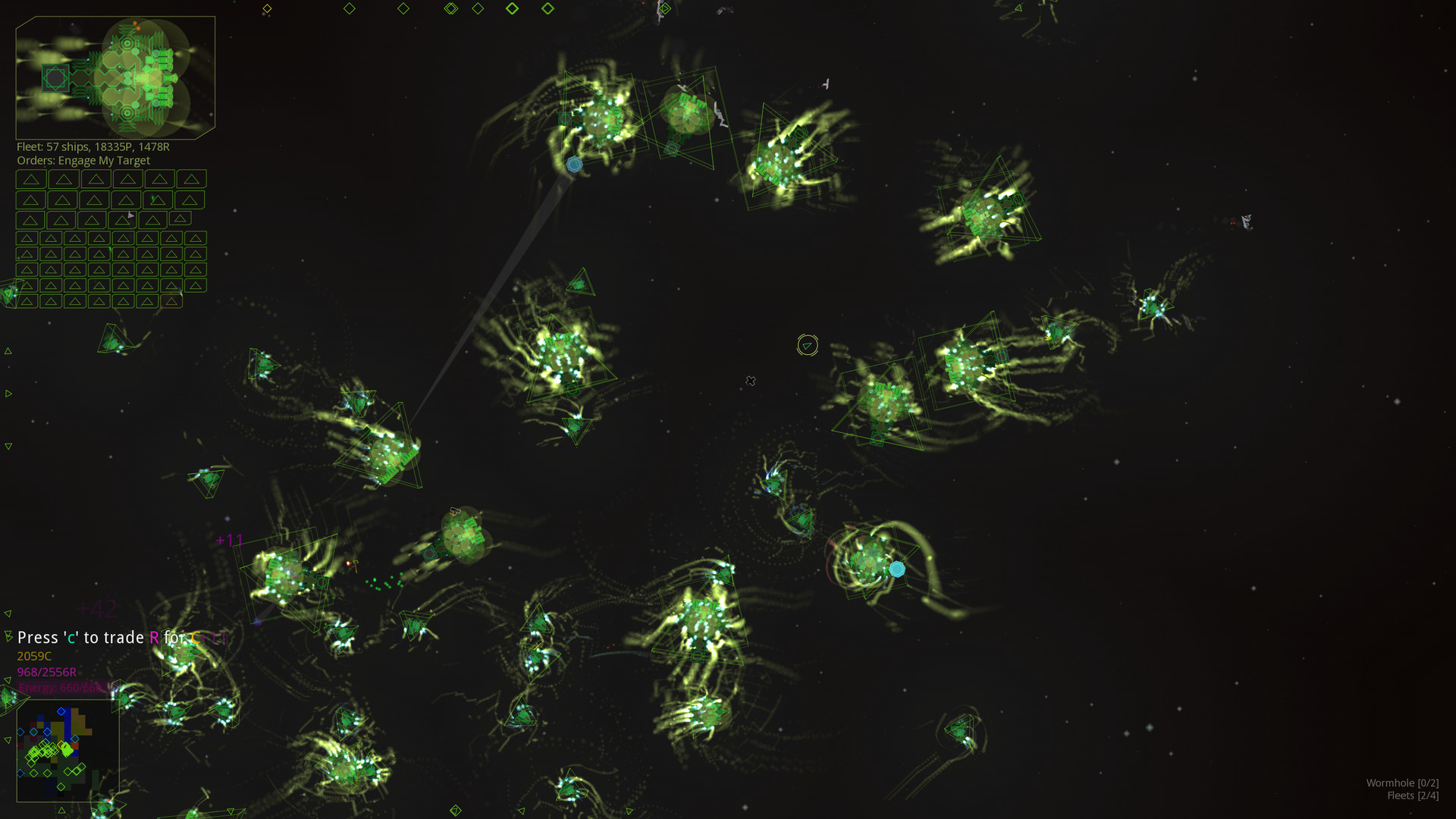 А потом вы вырастете еще раз. И еще раз. И теперь у вас огромный боевой корабль, который может построить собственный флот, и каждый корабль в этом флоте может построить собственный флот. И вам это жизненно необходимо. Ваши враги постоянно изменяют формы, размеры и мощность – корабли, созданные и закаленные опытом тысяч сражений попадают из компьютера создателя на ваш, впрыгивая в вашу Вселенную со всем милосердием мира, или, иными словами, СОВЕРШЕННО БЕЗ НЕГО.