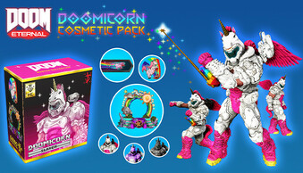 Пропустили набор «Единорок», ранее доступный только подписчикам Twitch? Купите его и станьте крутейшим скакуном ада с новыми обликами Палача, пьедесталами, анимацией, значком игрока и табличкой. Мчитесь вихрем по эпической кампании DOOM Eternal и режиму BATTLEMODE, стильно расшвыривая врагов, или позируйте в фоторежиме.