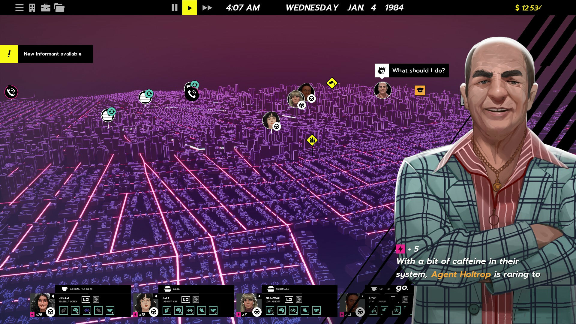 Нанимайте внештатных агентов для помощи в завершении дел! Каждое дело имеет свои требования, и при большом разнообразии агентов, из которых можно выбирать, найти подходящего агента для конкретного дела очень важно. Расширяйте свой реестр, чтобы в нем было больше агентов, выполняя задания и получая вознаграждения.
