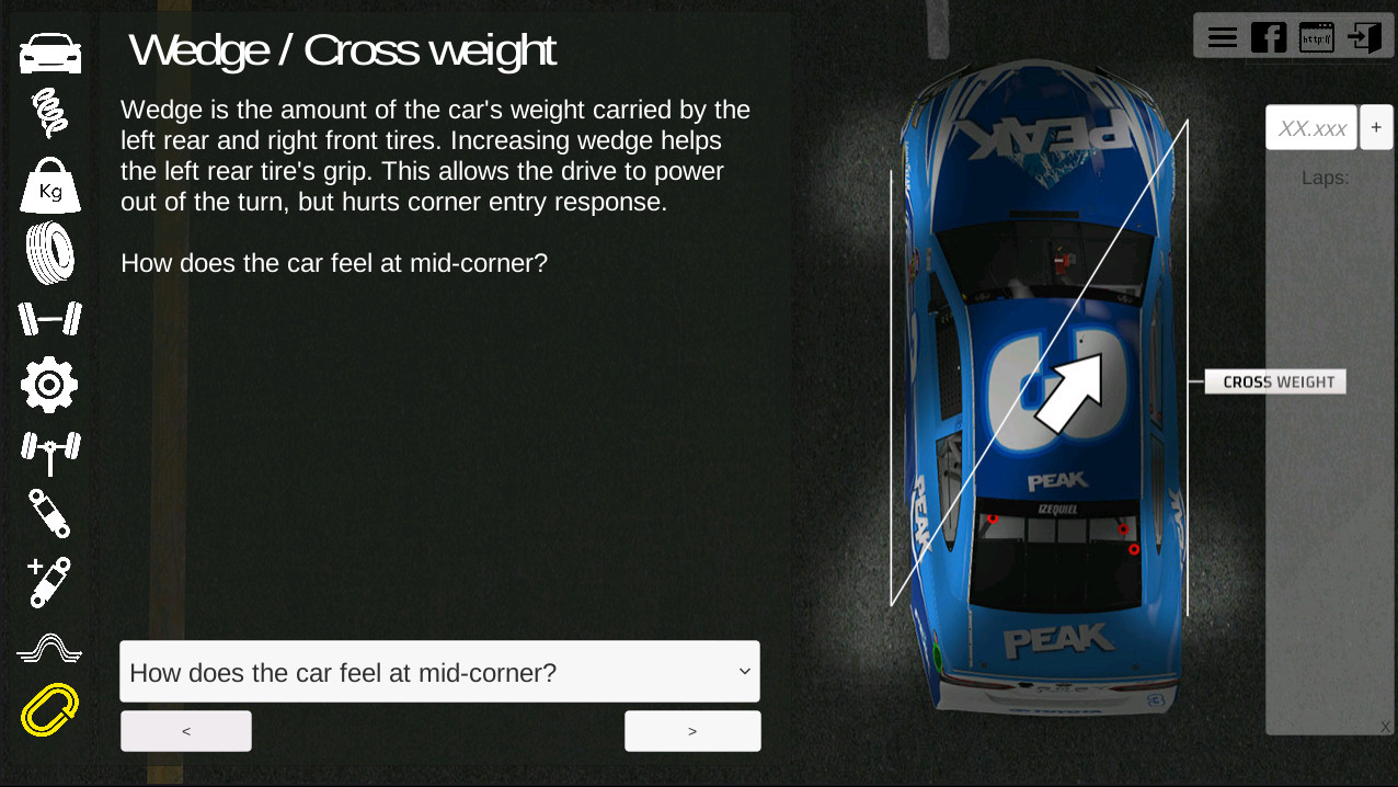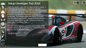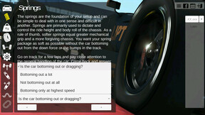 Beginner setup tuning - SDT2018 steps the user through the major areas of race car setup creation and tuning, asking simple questions about the behavior of the car and the user’s feel.