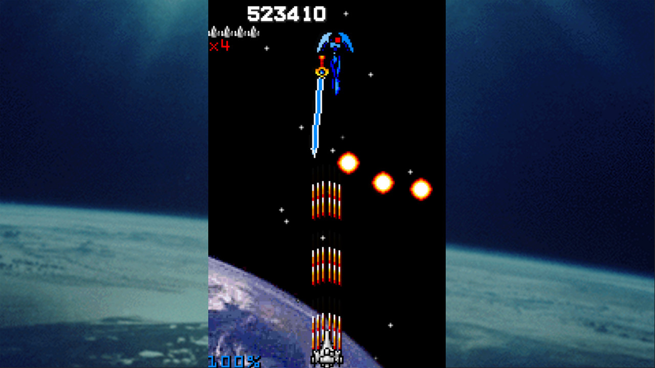 Зачем стоит играть в скролл-шутер, портированный с древней портативной консоли? Потому что он необычный и очень интересный! Структурой уровней и дизайном эта игра напоминает древние игрушки вроде Star Force на Денди - простенький фон, кучки вылетающих по разным траекториям врагов с незамысловатым дизайном, огромное количество уровней, правда пролетающихся один за другим меньше, чем за минуту. С другой стороны в этой игре есть очень много чего от буллет хеллов - большое количество пуль, выстреливаемых по хитрым траекториям, самонаводящиеся кривые лазеры, пиксельный хитбокс корабля и навороченная скоринг система. Вот непонятно, как это объясняется, но игра, смешивая особенности старых и новых скроллеров, умудряется неслабо затягивать, а под конец и вовсе напрягать опасными и запоминающимися битвами с боссами. Ещё одна особенность игры - щит, который замедляет вражеские пули или вообще их стирает, если они мелкие. Игра очень непростая, но чем больше вы играете, тем больше откроется в ней всяких облегчений. Любителям жанра обязательно к ознакомлению!
