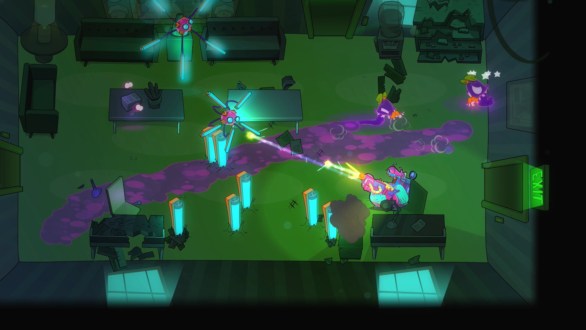 Что мы имеем в Dead End Job? Ничего из вышеперечисленного. Хочешь полностью пройти игру на все ачивки? Будь добр, окунайся в душный унылый гринд по уши. Глубины у игрового процесса нет. После первого прохождения все паттерны врагов становятся очевидными, не умереть гораздо проще, чем умереть.