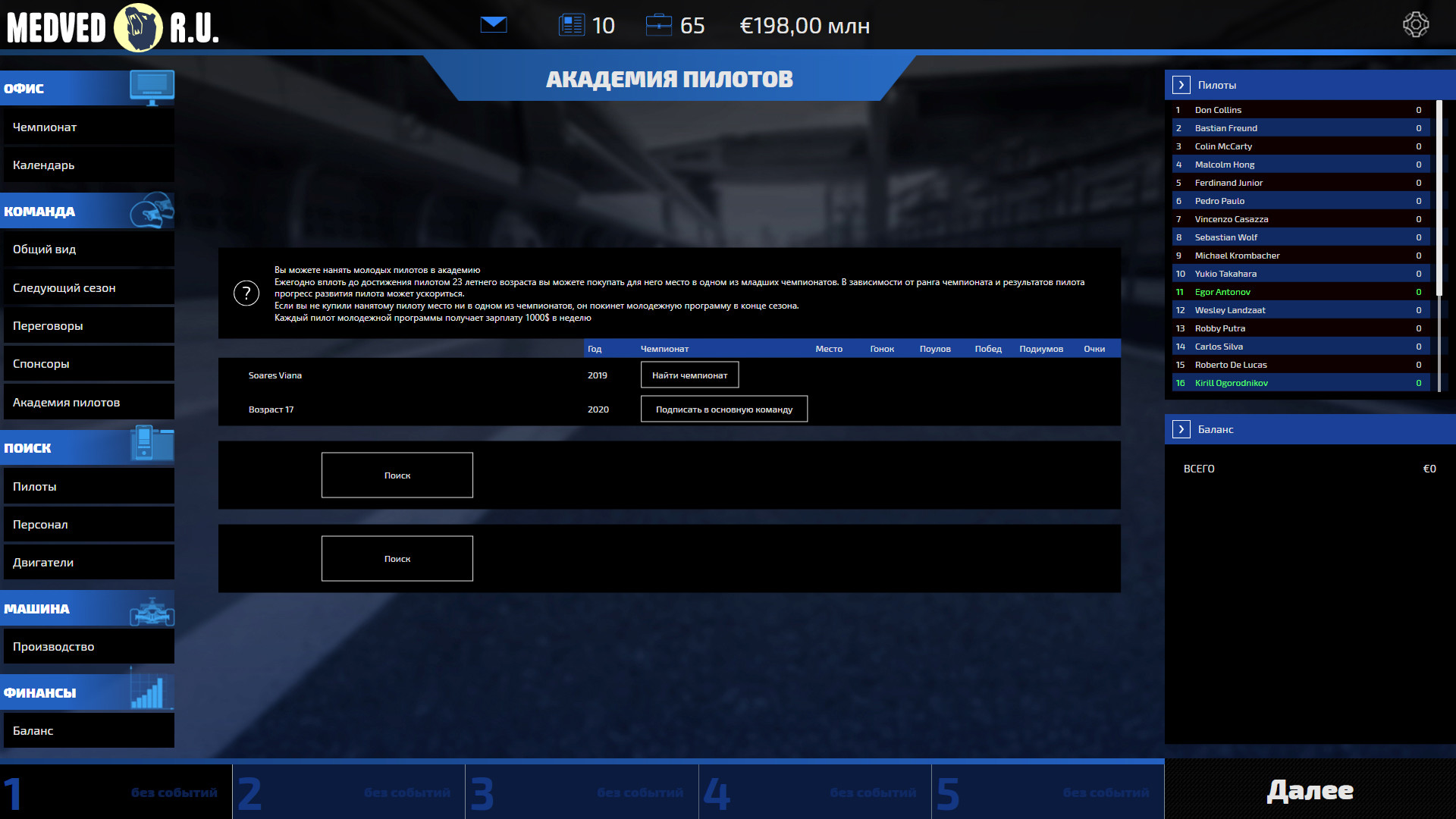 - Реалистичные переходы пилотов между командами базирующиеся на системе репутации;