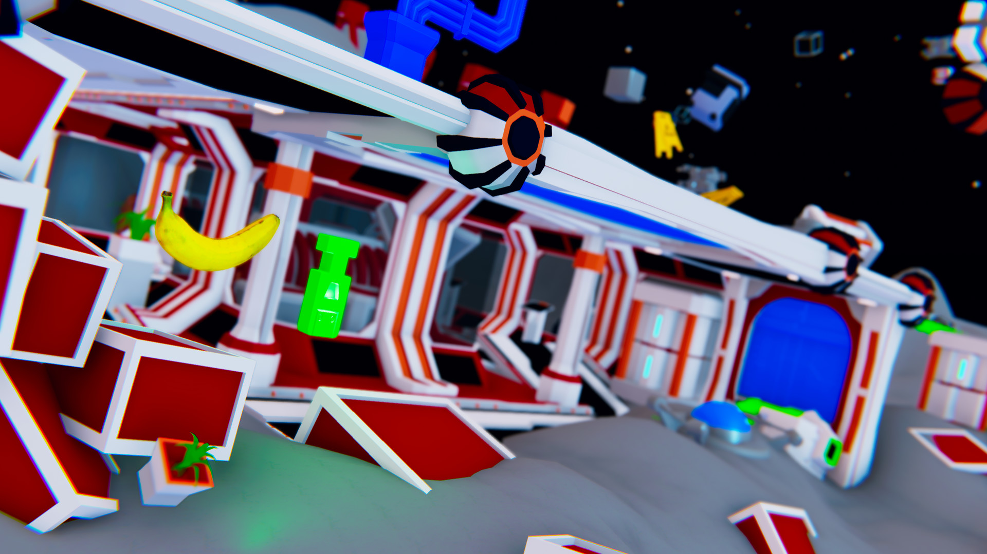 Я....я...я.... БАНАН!? Хорошо, что не киви.)) Главный герой обнаруживает себя заточенным в банане, в невесомости. Вероятно произошла какая то катастрофа в космосе и теперь ему придется найти путь домой, на землю. Отталкиваясь от посторонних предметов, перемещаемся по космической станции, нажимаем на кнопки открывания дверей, вставляем парящие в невесомости разноцветные ключи. Оказавшись на луне вы почувствуете небольшое притяжение, что усложняет попытки подняться выше, а добравшись до земли притяжение усилиться до привычного и через болючие восклицания "Ой, ай, оу!!!" пытаться преодолеть небольшие горы офисного инвентаря)) Все это происходит под классическую музыку( за что огромная благодарность разработчику). Можно играть с друзьями до 4х человек. Игра может вызывать ярость у нетерпеливых людей, так как порой не с первого раза удается направить банан в нужное место. Так же он может застревать или пролетать сквозь некоторые стены (это вероятно баг). Наберитесь терпения и все рано или поздно получится. Достижения есть.