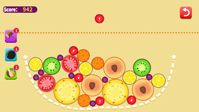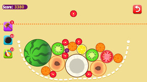 The game is based on the theme of watermelon. You only need to collide the same fruits to synthesize. Three special props: Hammer: One click, you can crush any kind of fruit; Bomb: You can eliminate two adjacent fruits at the same time; Color ball: can eliminate all fruits of the same color.