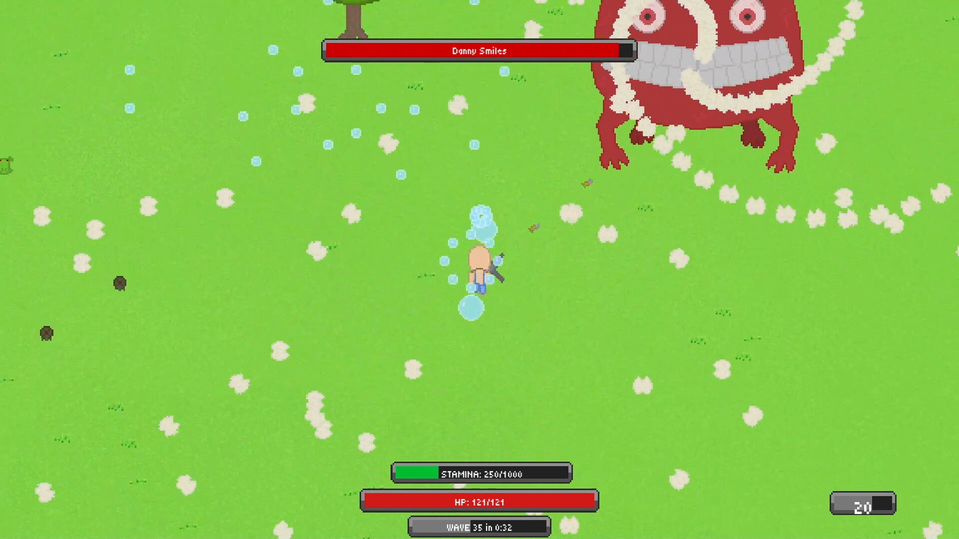 Meander your way around a never-ending world, defeating successive waves of enemies and stealing their pennies so that you can buy items that'll help you defeat even more enemies. There's also boss fights. And frogs.