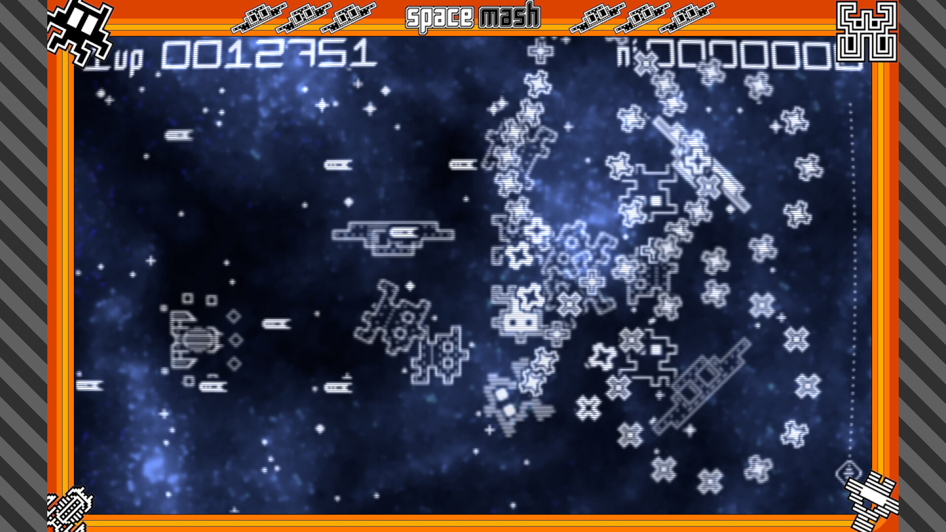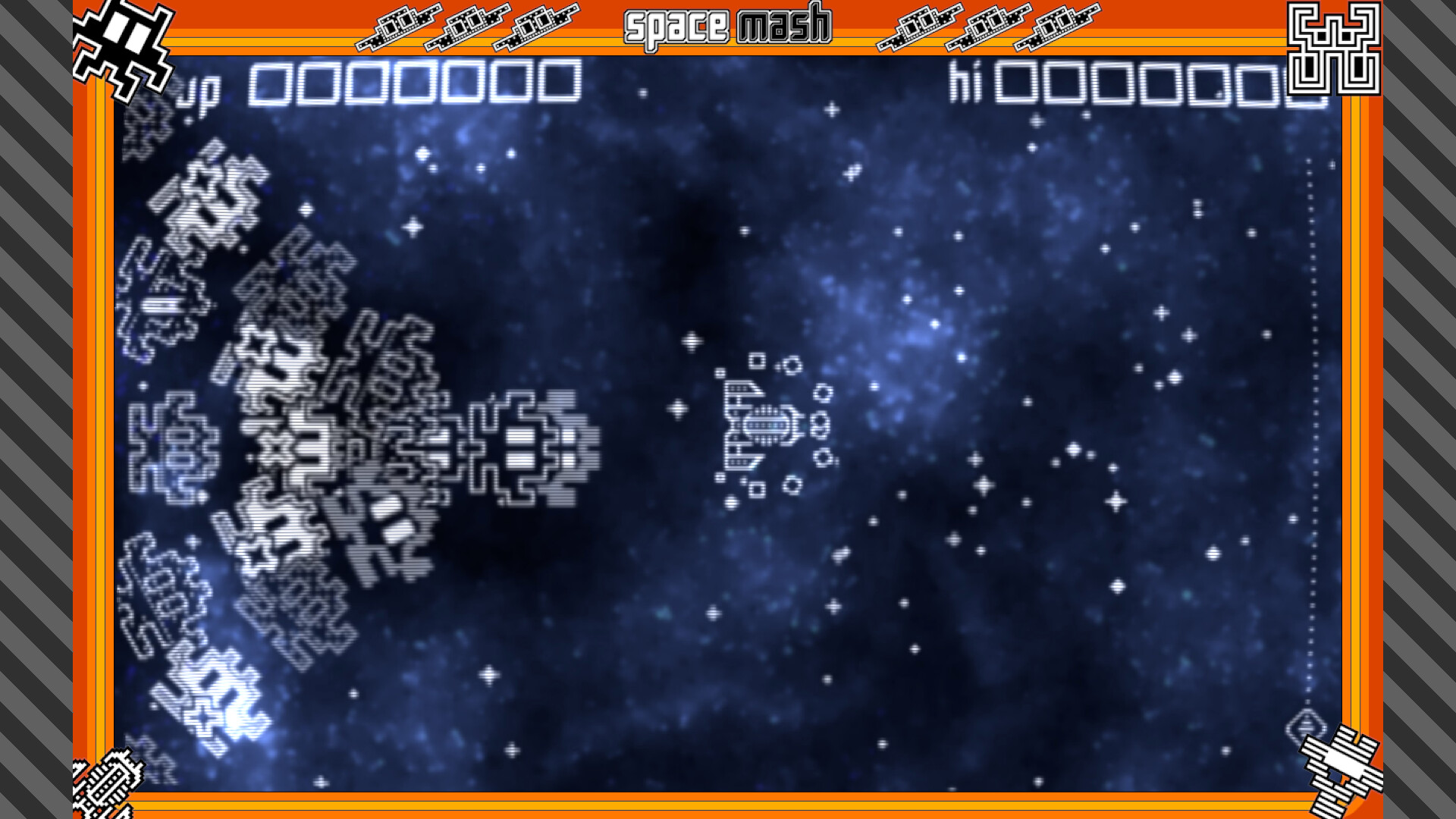 Space Mash is a bullet-hell shooter in the retro style of the earliest arcade games. To help beginners, older players and those with a motor impairment, there are five levels of slow-down that can be activated at any time during game play.