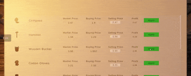 Следи за капризами рыночных ветров. Покупай товары по выгодной цене и устанавливай свою — соблюдая баланс между жаждой прибыли и доверием народа. Мудрый торговец знает, когда ждать, а когда продавать.