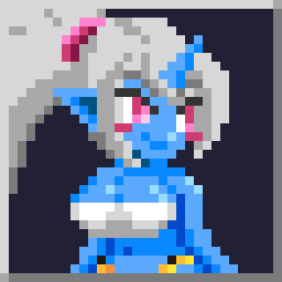 Самая смешная и милая близняшка, у нее только один рог, она любит сладости и торты. Ее помощник — тануки, который стреляет по кругу.