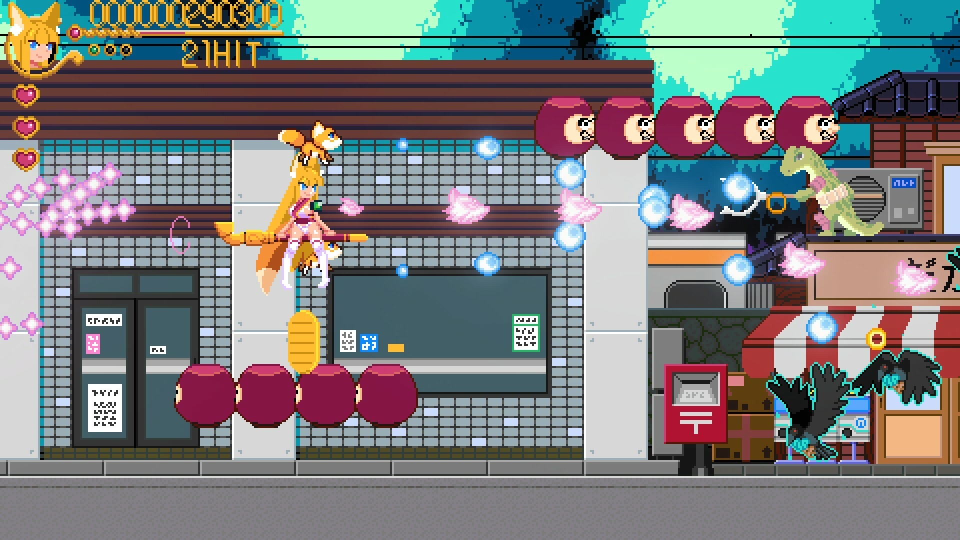 4 прекрасных девушки-ёкаи в качестве игровых персонажей в стиле пиксельной графики, каждая с разным типом помощника, плюс их пляжная версия!