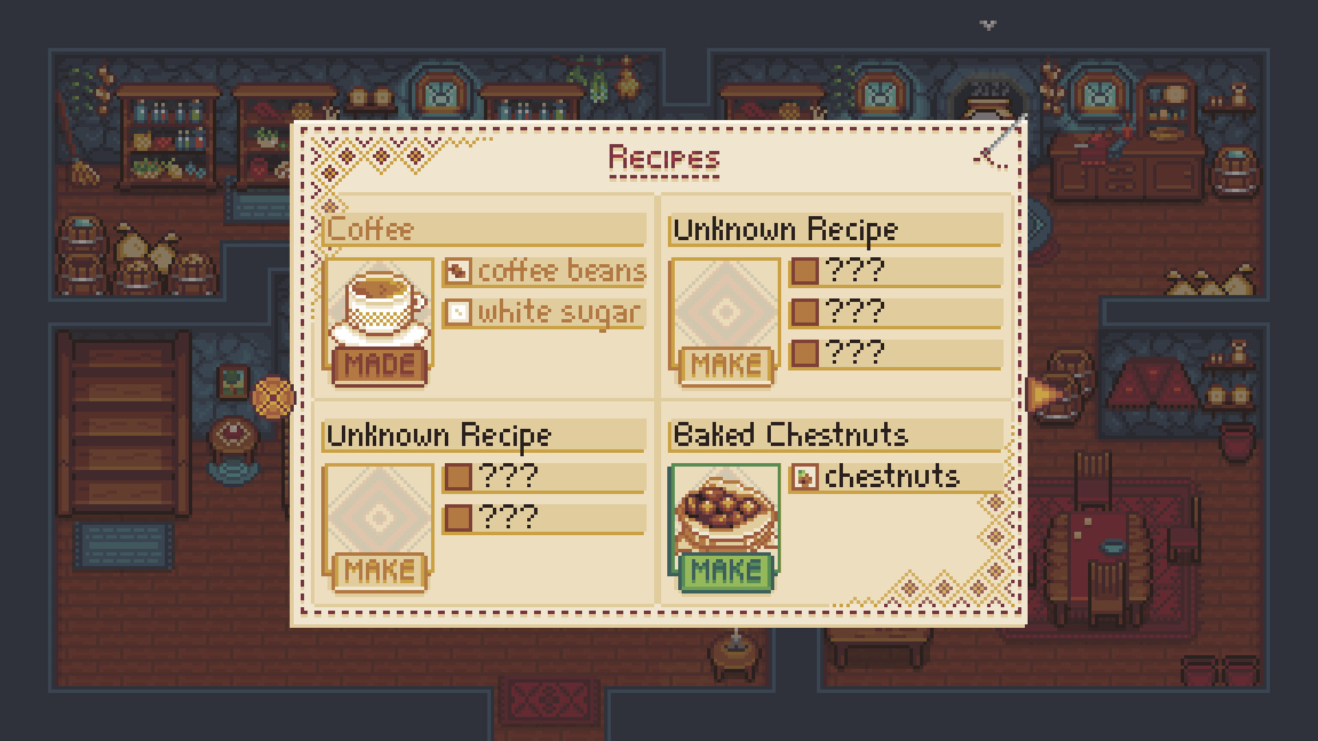 In your hands, cooking has the power to heal and shed light on a person's internal landscape. You can trigger memories of your most potent recipes by exploring the environment.