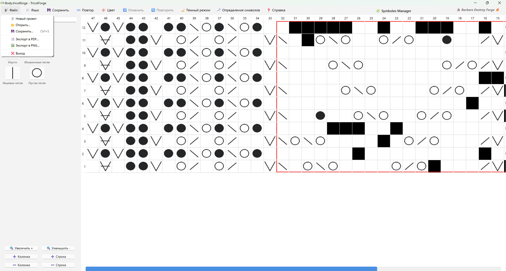 TricotForge — цифровая мастерская для создания, организации и печати вязаных узоров. Простая, быстрая и функциональная: инструменты рисования, управление символами, экспорт PDF/PNG и Steam Workshop.