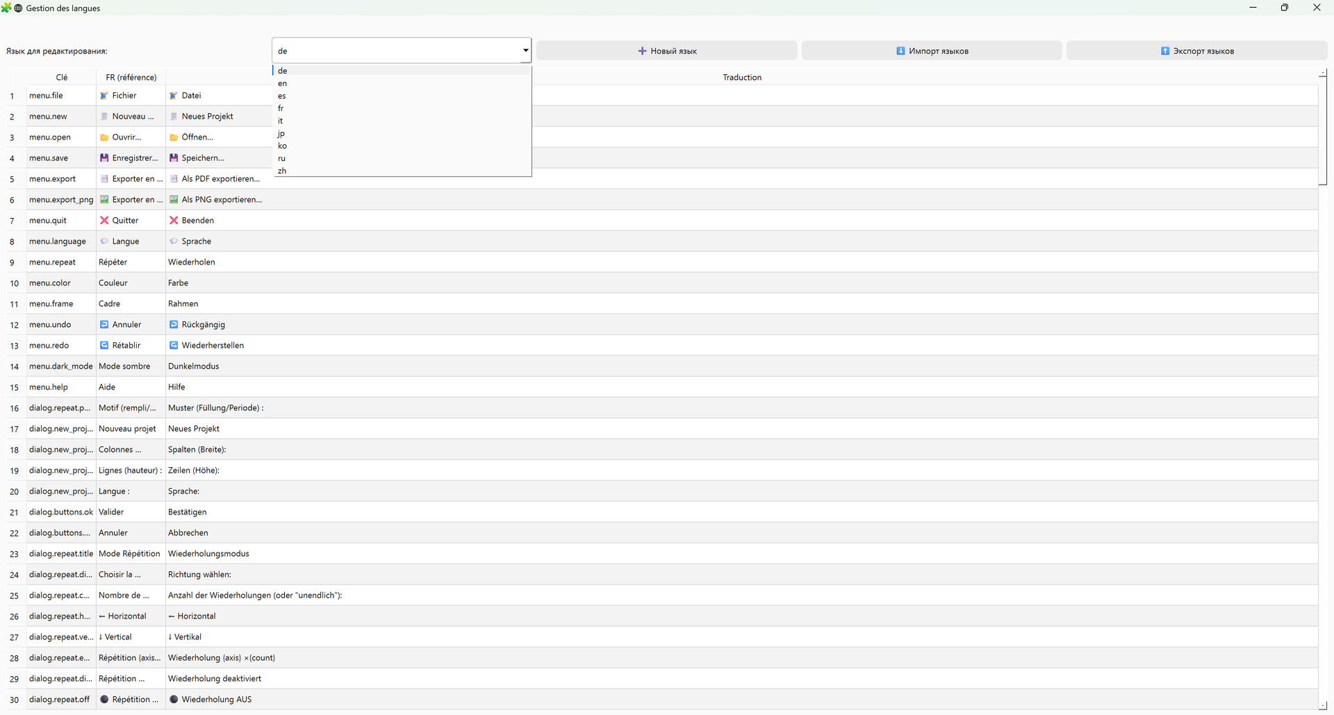 Полная встроенная система управления языками:
