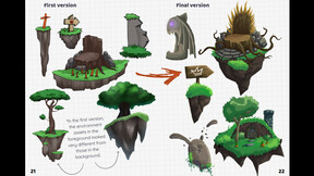 World Development: Compare early concepts for Maholia and the Eten fairland with their final, more navigable designs Yarn Guardians Booklet.