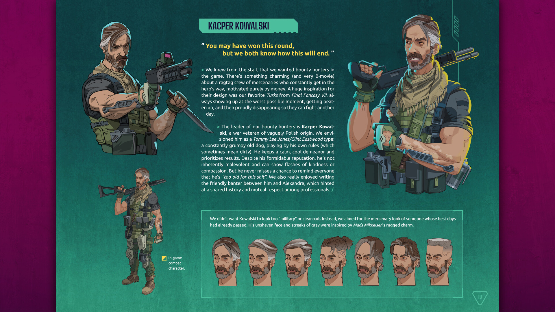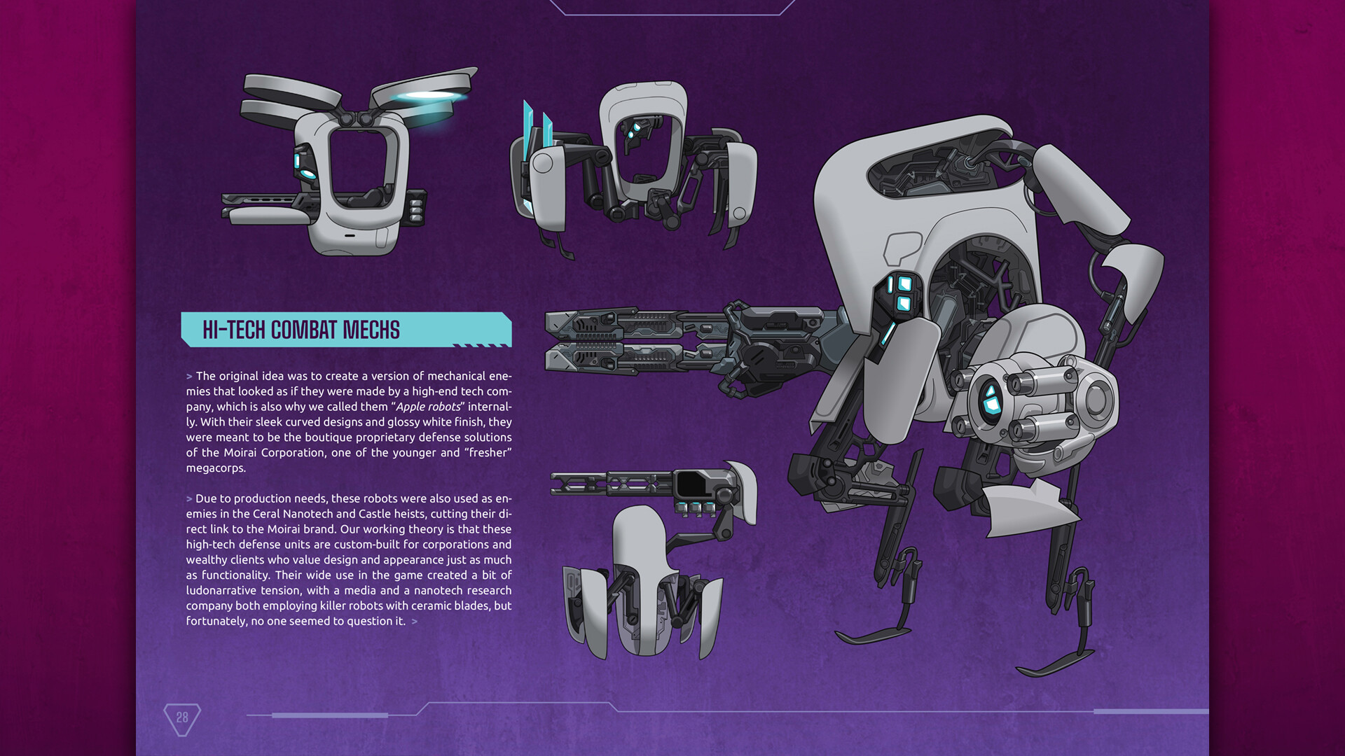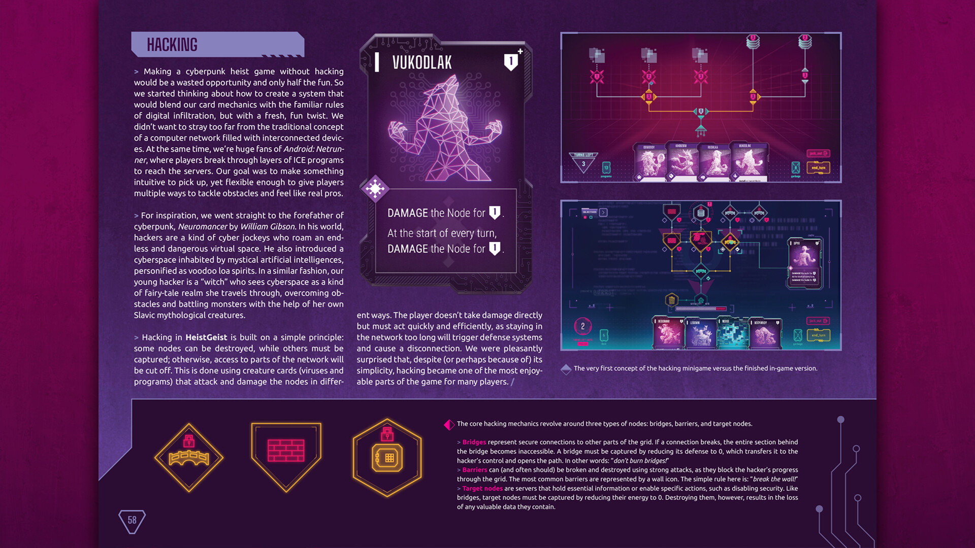 More than 60 pages filled with concepts, designs and illustrations from HeistGeist. Pictures are accompanied with commentary explaining the thought processes and ideas behind the creation of the art of the game.