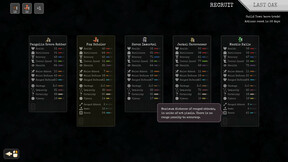 A roaming-warband roguelike with procedurally generated units and autobattler combat.