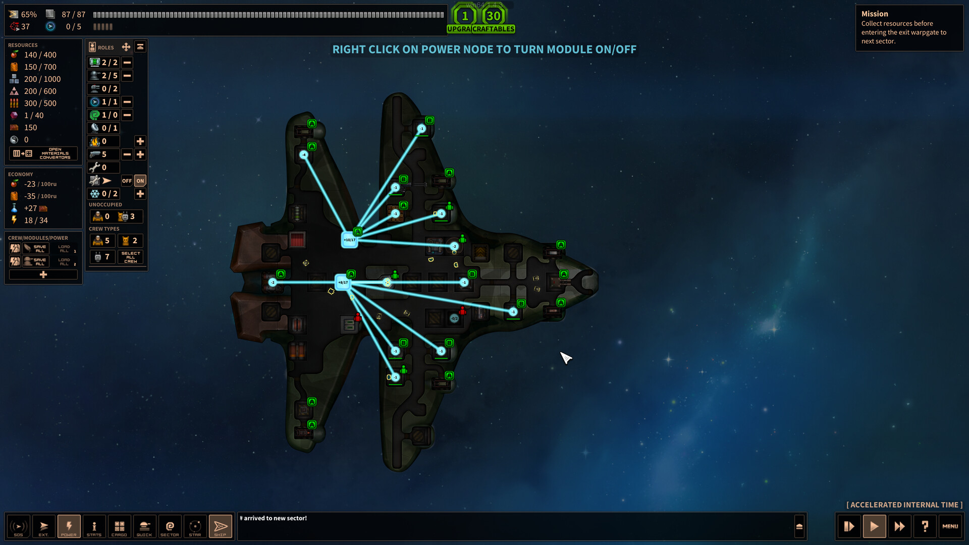 While the vessel is loaded with rockets, missiles, drones & nukes, there is naturally a downside. Most of the non-combat modules are missing or replaced with something (it's even missing a functional warpdrive). The player has to craft obtain these via crafting or otherwise for a fair chance of survival in the depths of space.