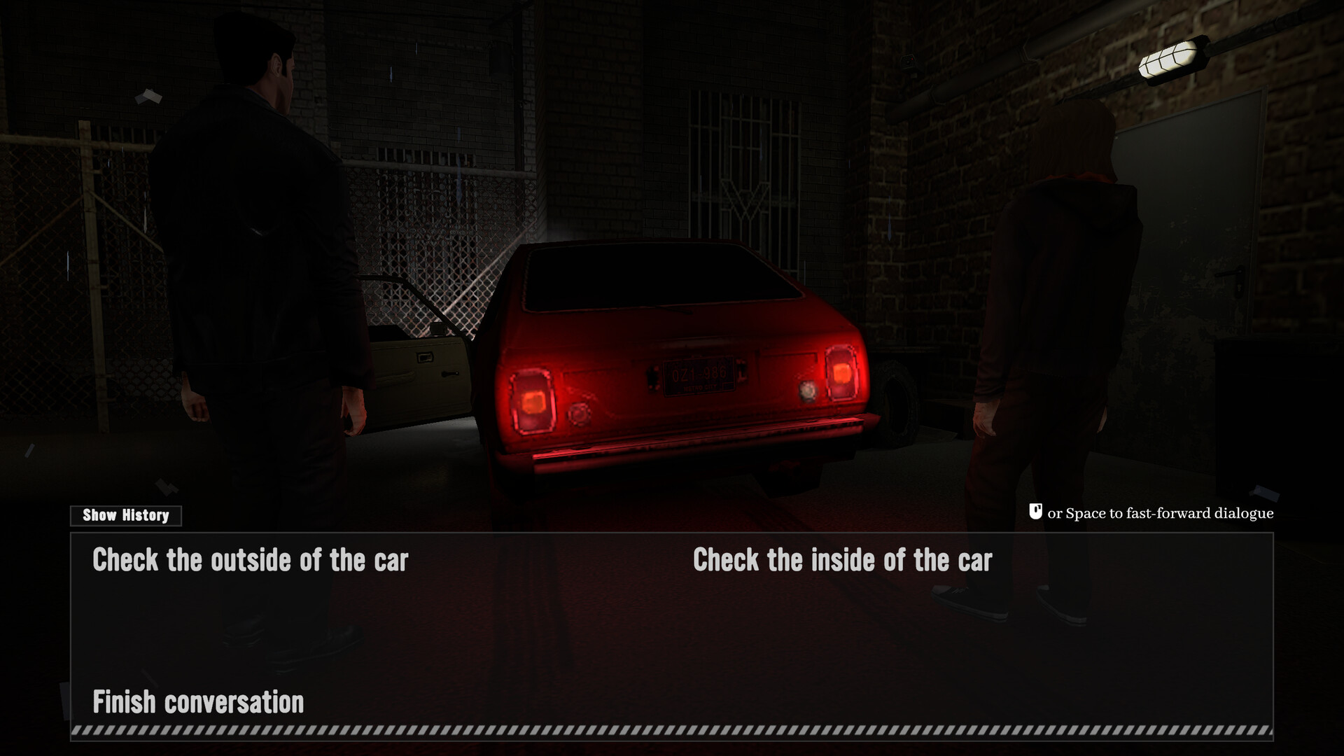 Solve the mystery through a series of conversations, interrogations and combing of clues
