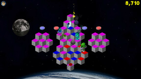 Help QBob leap from rock to rock as he surveys an array of strangely shaped asteroids, all while avoiding a host of alien creatures—each more devious than the last. The job's not done until all the cubes have been marked for demolition. Hit the big red button and skedaddle to your escape rocket before the Big Kaboom!