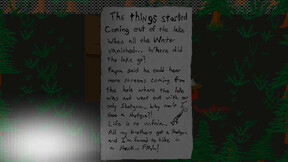 You play as Wolfie, a femboy with a shotgun suffering from sexual OCD, as he searches for his girlfriend Gina in a dark, mysterious, out-of-the-way town with only one gas station and a missing lake. Where did everyone go?