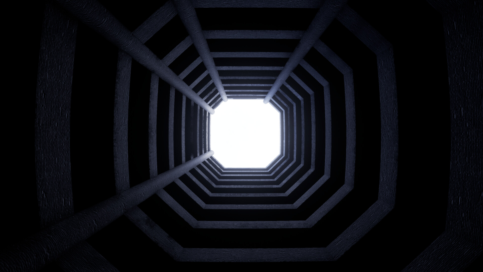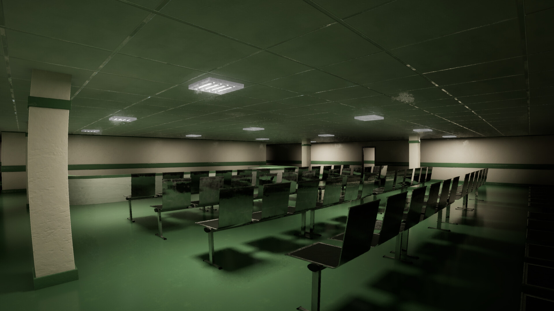 Окружение вдохновлено Backrooms Level 0, больничными коридорами, бетонными конструкциями и эстетикой пулкора. У каждого уровня уникальный стиль.