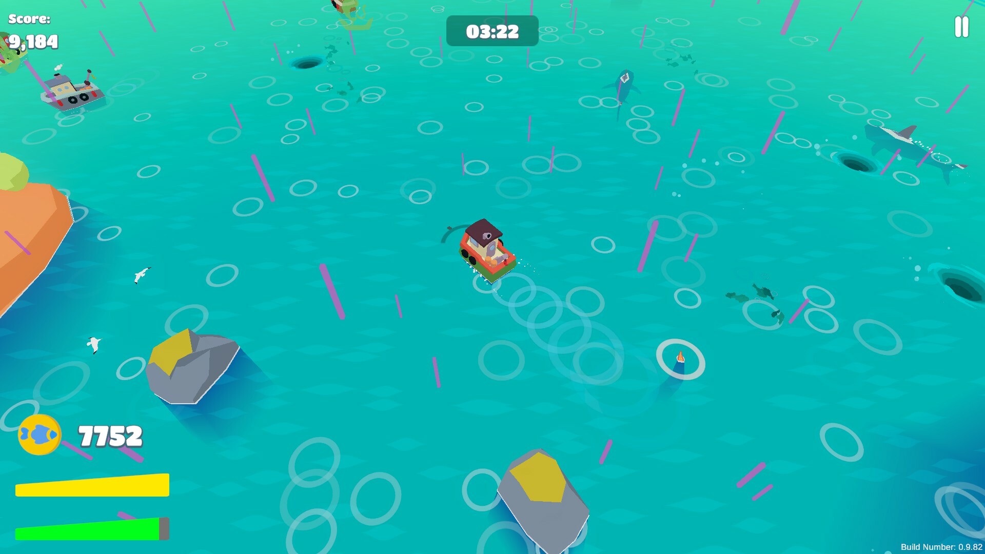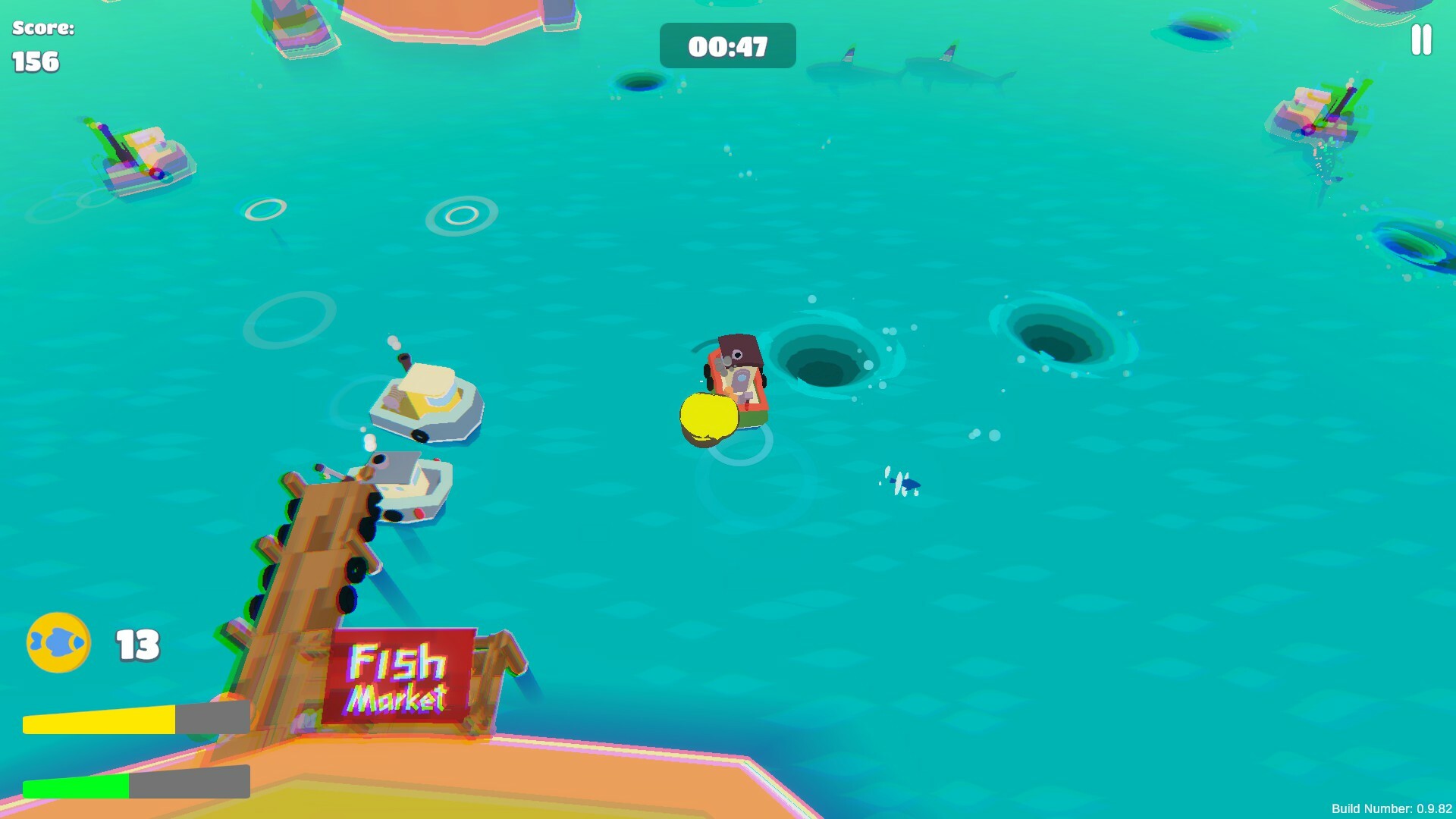A small casual fishing game where every round is bite-sized, and the competition is fierce for every fish. On the dock, you can use the fish you've collected to buy upgrades and repair your damaged vessel. And in desperate times, you can even fire your fish at your rivals. Good luck !