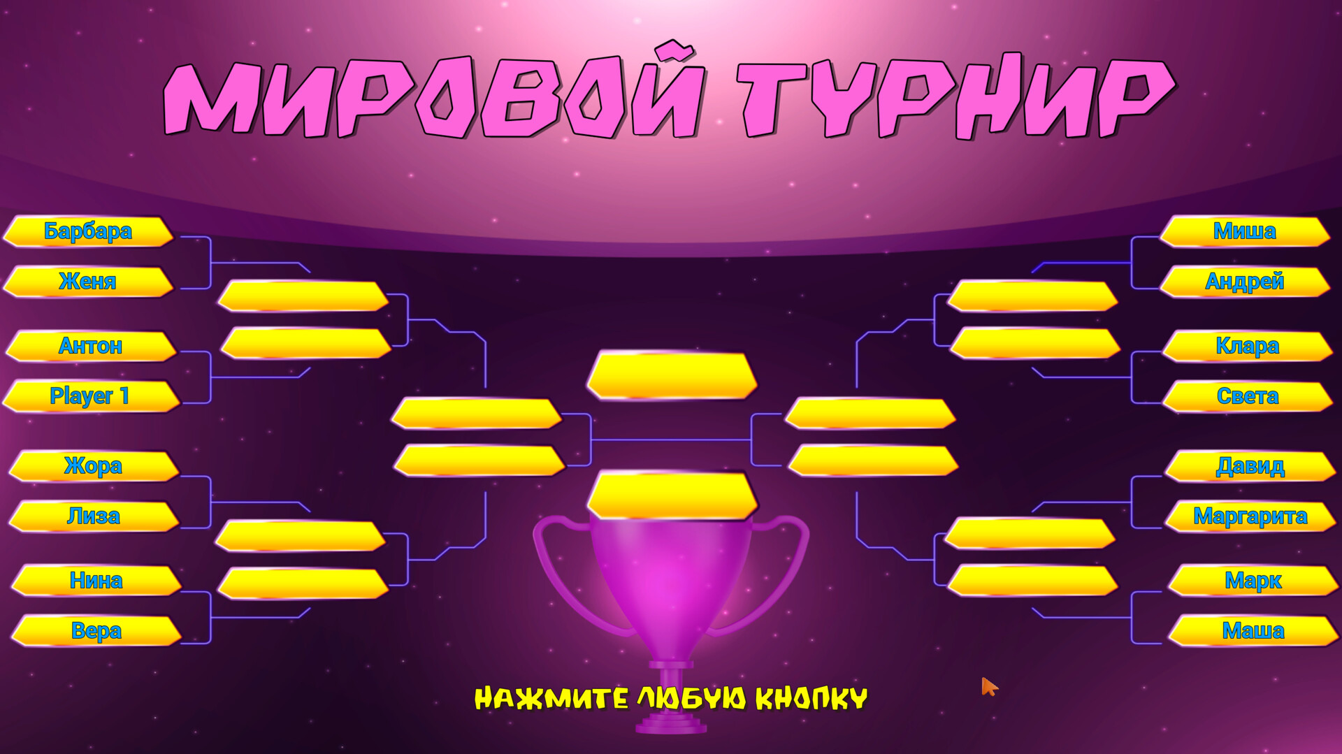 Огромное спасибо разработчикам за игру, которая дарит возможность весело провести время как в одиночку, так и с друзьями. Что я отметил длясебя: ✅ Гибкость режимов: можно сыграть быстрый матч против ИИ или устроить жаркую битву с другом ✅ Турнирная система: борьба за чемпионский титул добавляет игре азарт. ✅ Разные персонажи: выбор героев с уникальным стилем (пусть даже косметическим) — приятный бонус, который добавляет индивидуальности. ✅ Динамичный геймплей: бегать по полю, отбивать мяч - довольно весело! Игра отлично подойдёт для тех, кто хочет расслабиться после работы или устроить мини-соревнование с приятелем. Видно, что автор вложил душу в проект, и это уже достойно уважения. Жду обновлений — например, новых персонажей или новых карт. Рекомендую попробовать всем фанатам спортивных аркад!