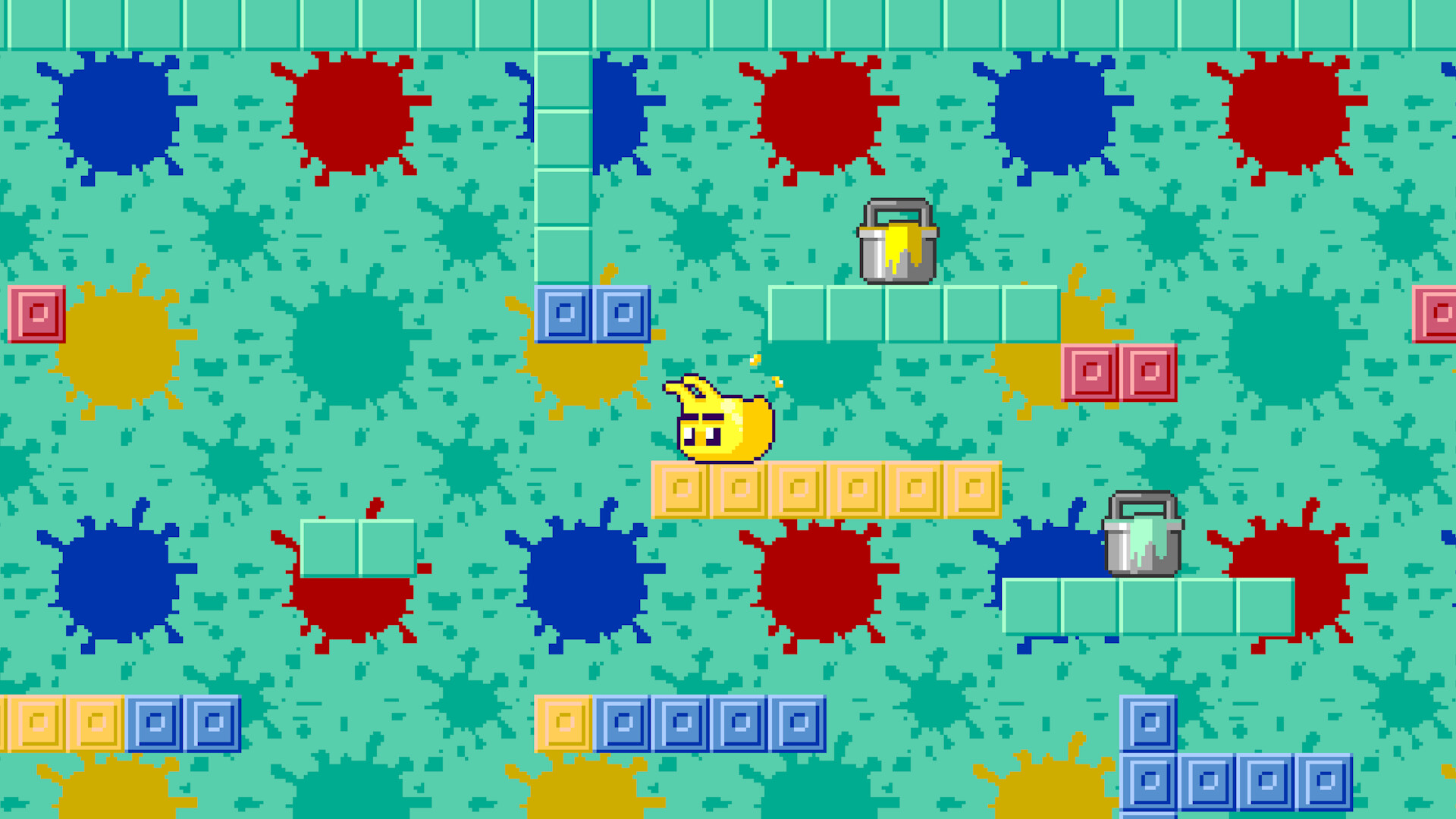 Along the way, you’ll encounter tricky obstacles. Push boxes matching Gloop’s current color to climb higher platforms, and open locked doors by finding and activating levers of the correct color to advance your journey.