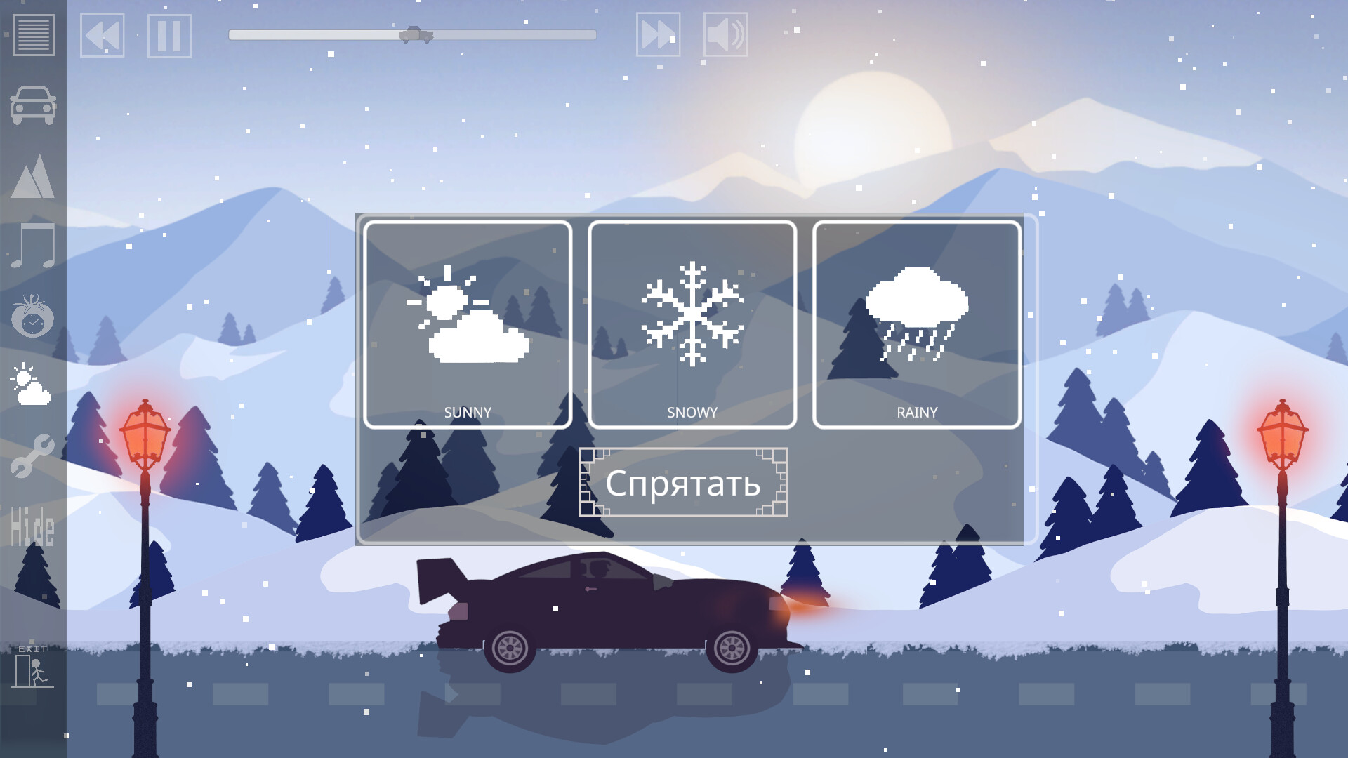 В полной версии вы также сможете выбрать погоду в зависимости от вашего настроения. Мы предлагаем солнечную, снежную и дождливую погоду (эта функция недоступна в DEMO-версии).