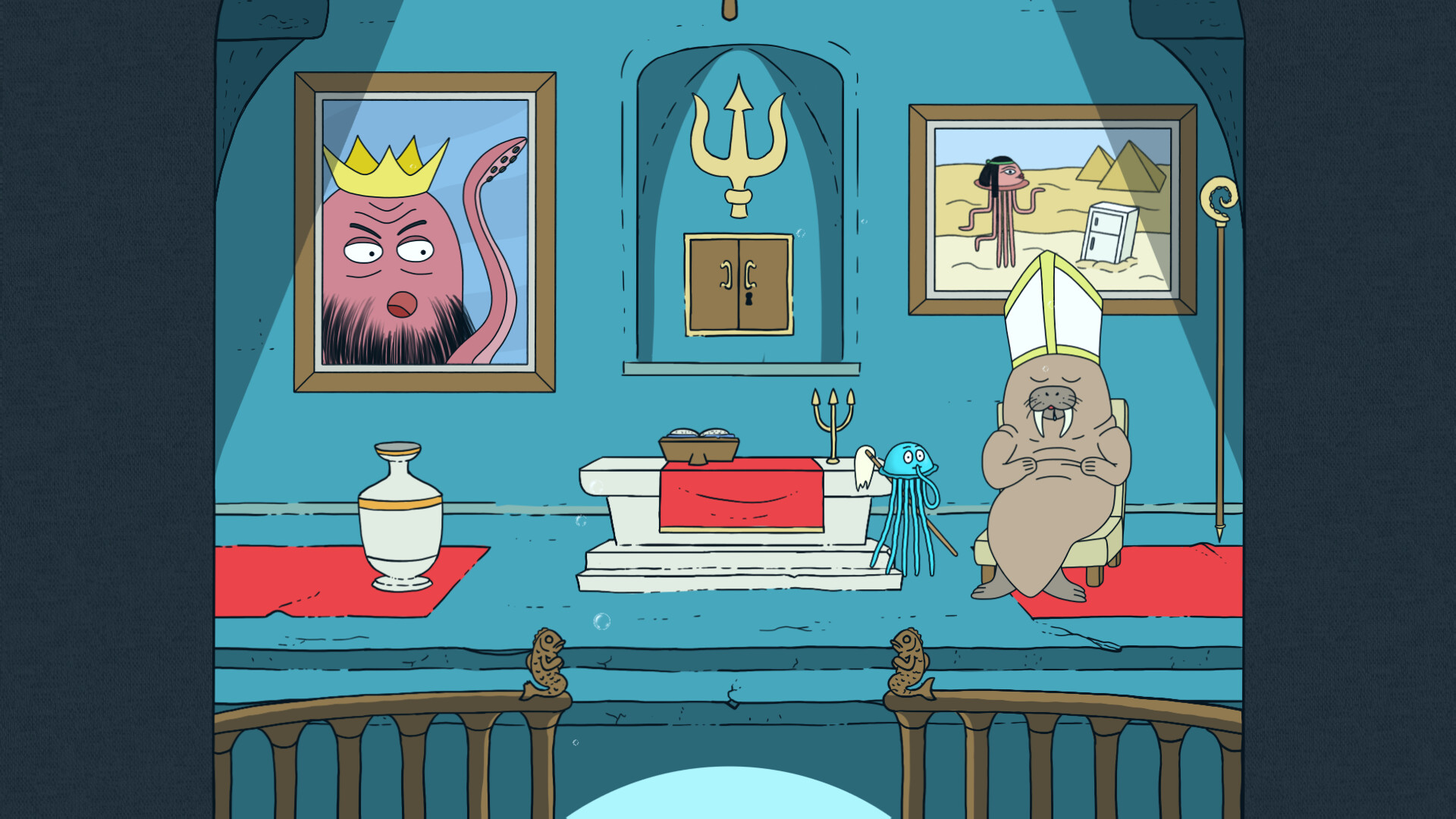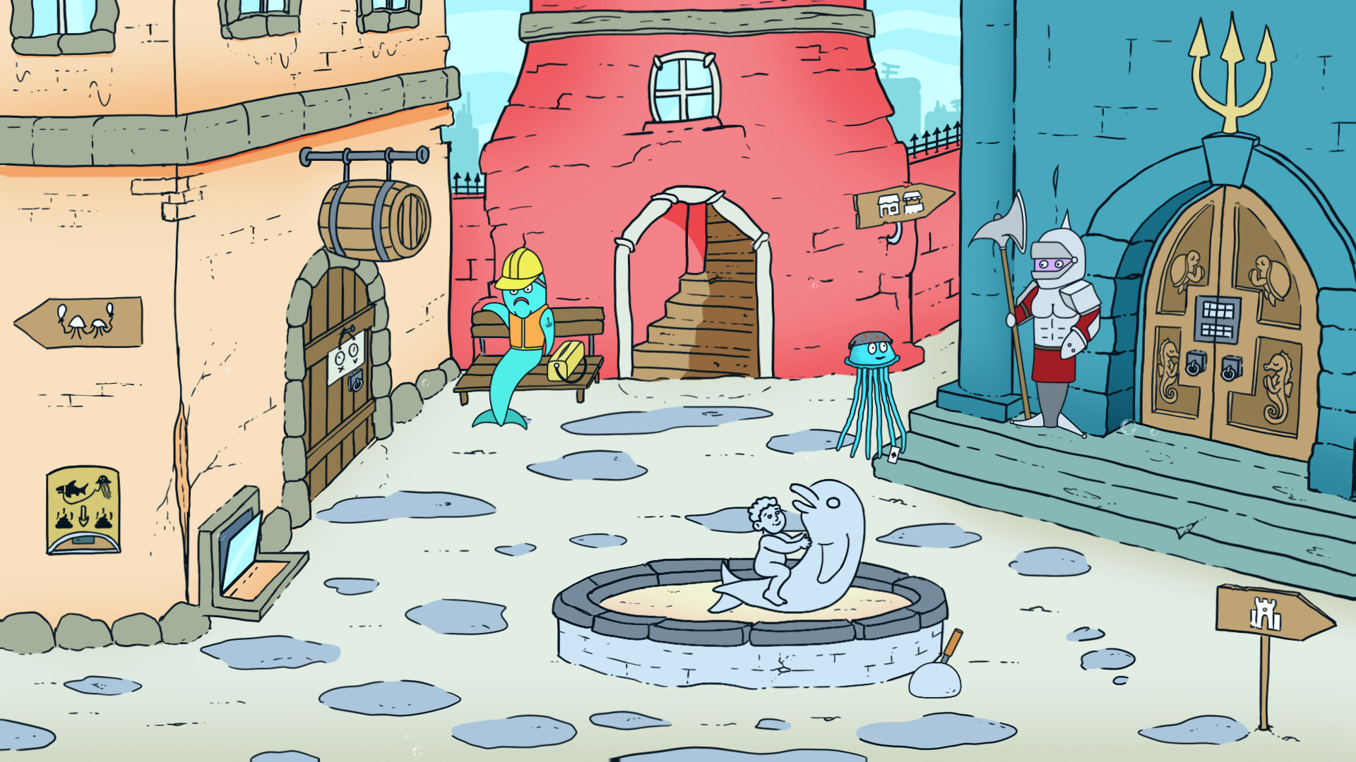 Синяя медуза отправляется в эпическое путешествие, чтобы забрать своего ребенка из детского сада и отвезти его домой на обед. Однако путешествие оказывается полным сюрпризов и неожиданных препятствий. Автобус до города ломается посреди «пустыни» (мы все еще под водой, заметьте), и только вы можете придумать, как снова заставить его работать... только чтобы обнаружить, что у вас нет денег на билет на метро... Может быть, подработка в ресторане поможет? Может быть, но это только начало. Какие еще приключения ждут вас в этом подводном мире забавных загадок и абстрактного юмора? Никто на самом деле не знает... ну, может быть, кроме Древних…