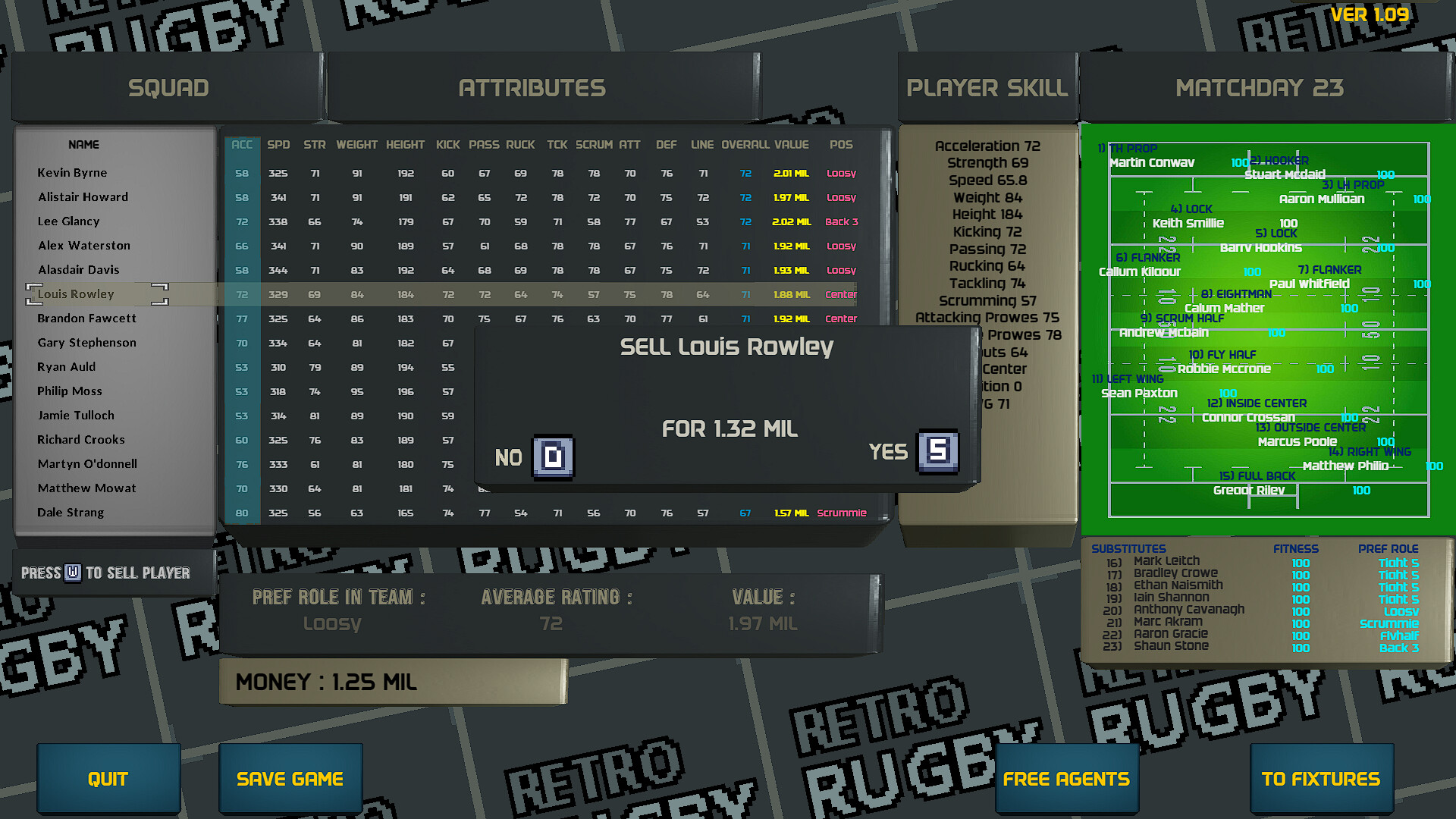 Step onto the pixelated pitch in Retro Rugby, a fast-paced, action-packed 2D rugby experience with a modern twist! Featuring smart AI, physics-based collisions, and smooth controller support, this game delivers an authentic yet accessible rugby experience in a nostalgic top-down isometric style.