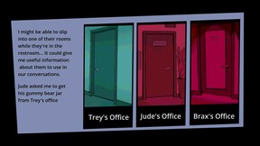 A modern fantasy visual novel set in a corporate office. Interact with three main characters and two side characters to navigate the challenges of workplace dynamics and politics by building relationships and a good reputation for the ultimate goal of advancing your career.