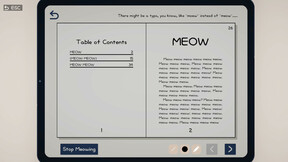 Meow Game is a game where you read books made for cats and spot the typos. As you immerse yourself in these feline-centric books, you might start questioning if you’ve turned into a cat. But don’t worry—rest assured, that’s not happening. If it feels like it, maybe it’s time to take a short break!