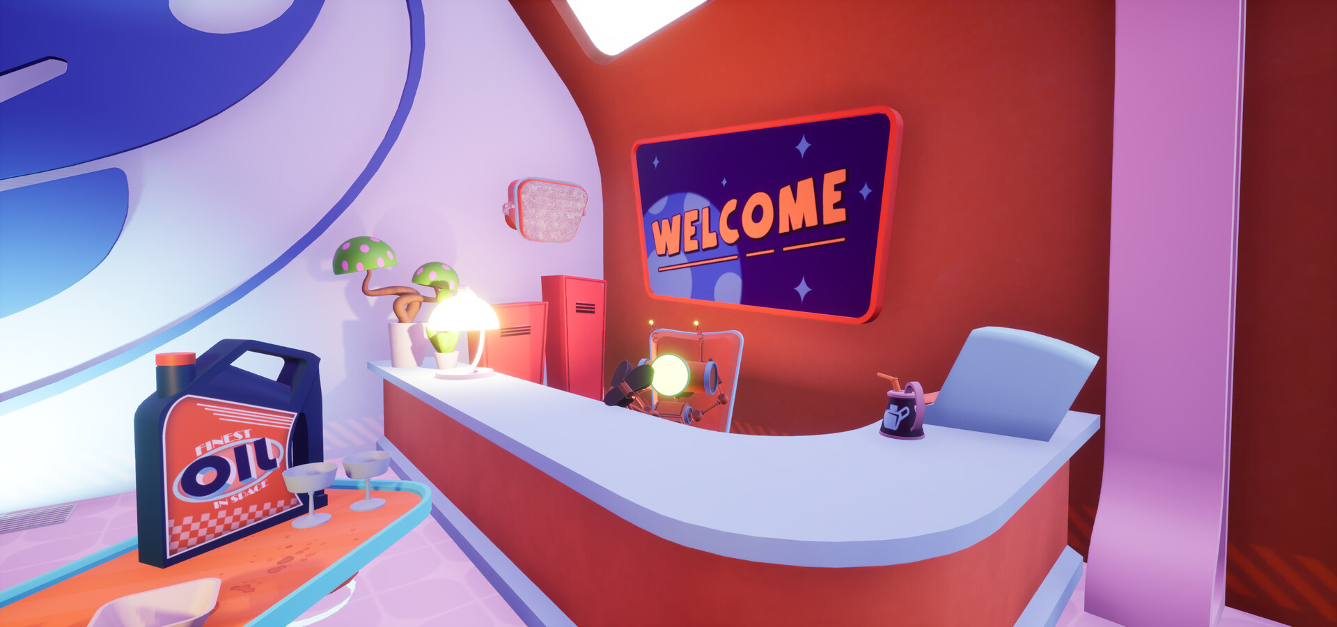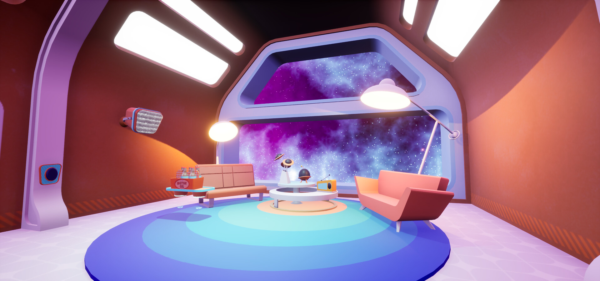 Stylized retro-futuristic cartoon world