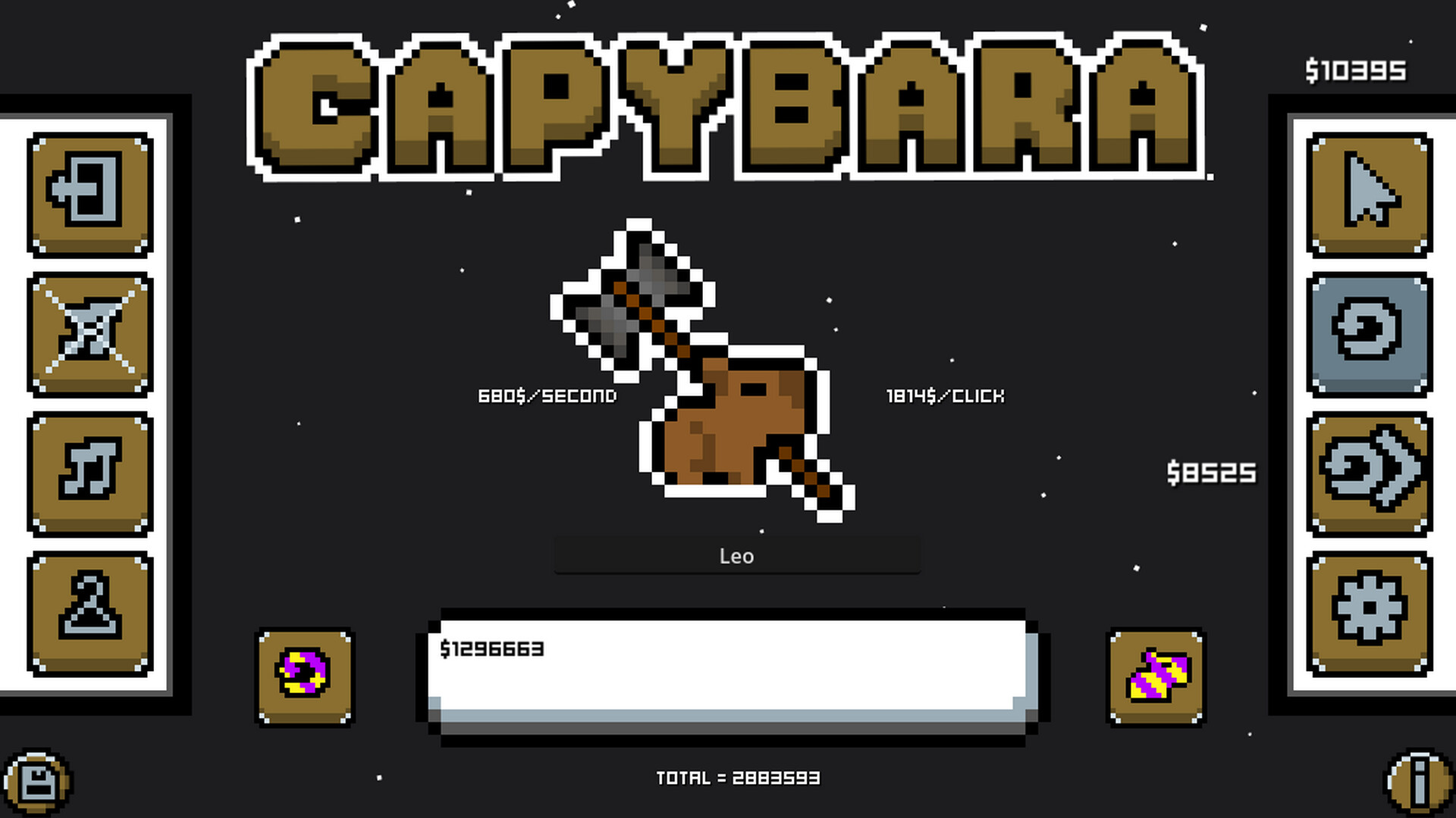 Capybara Achievement Clicker is an incremental and idle game that puts you in the shoes of a Capybara owner who earns more money with every click on his pet.