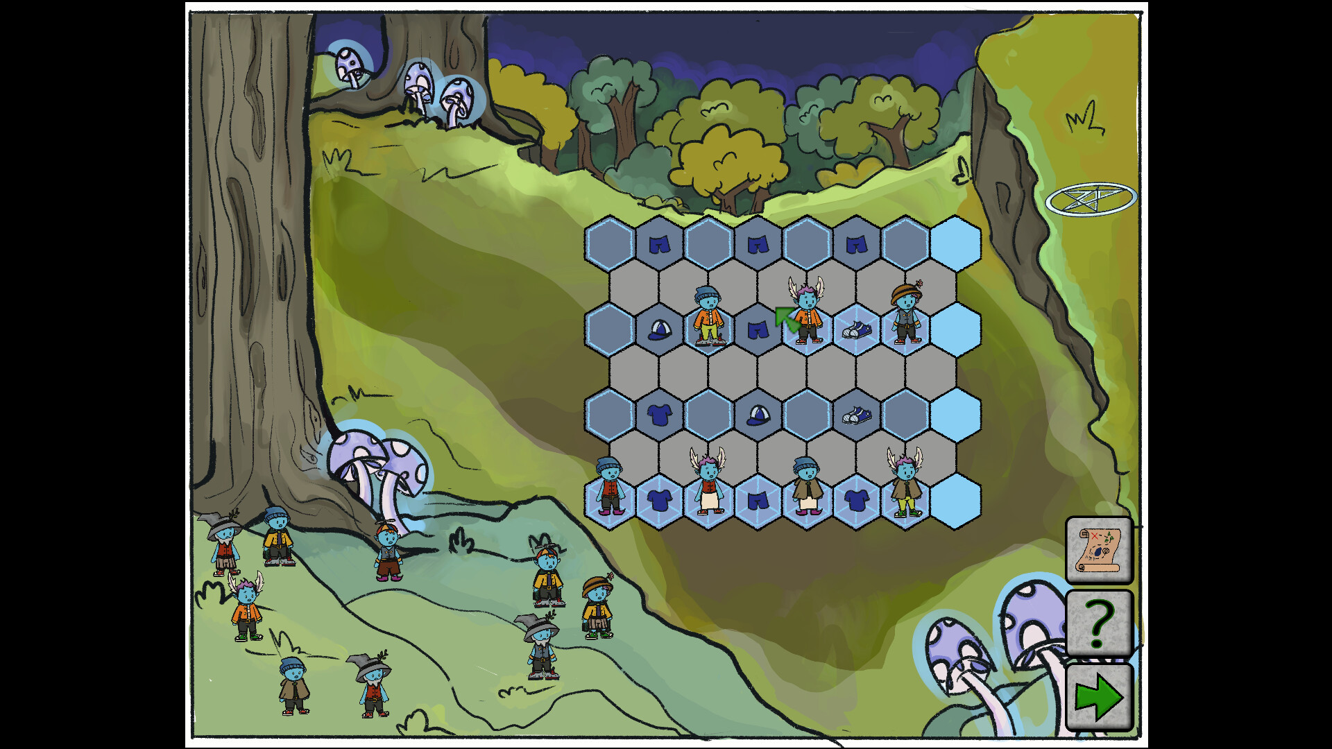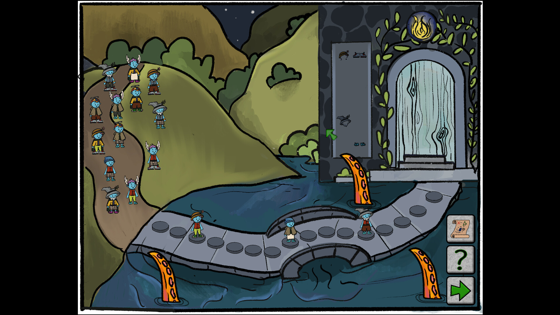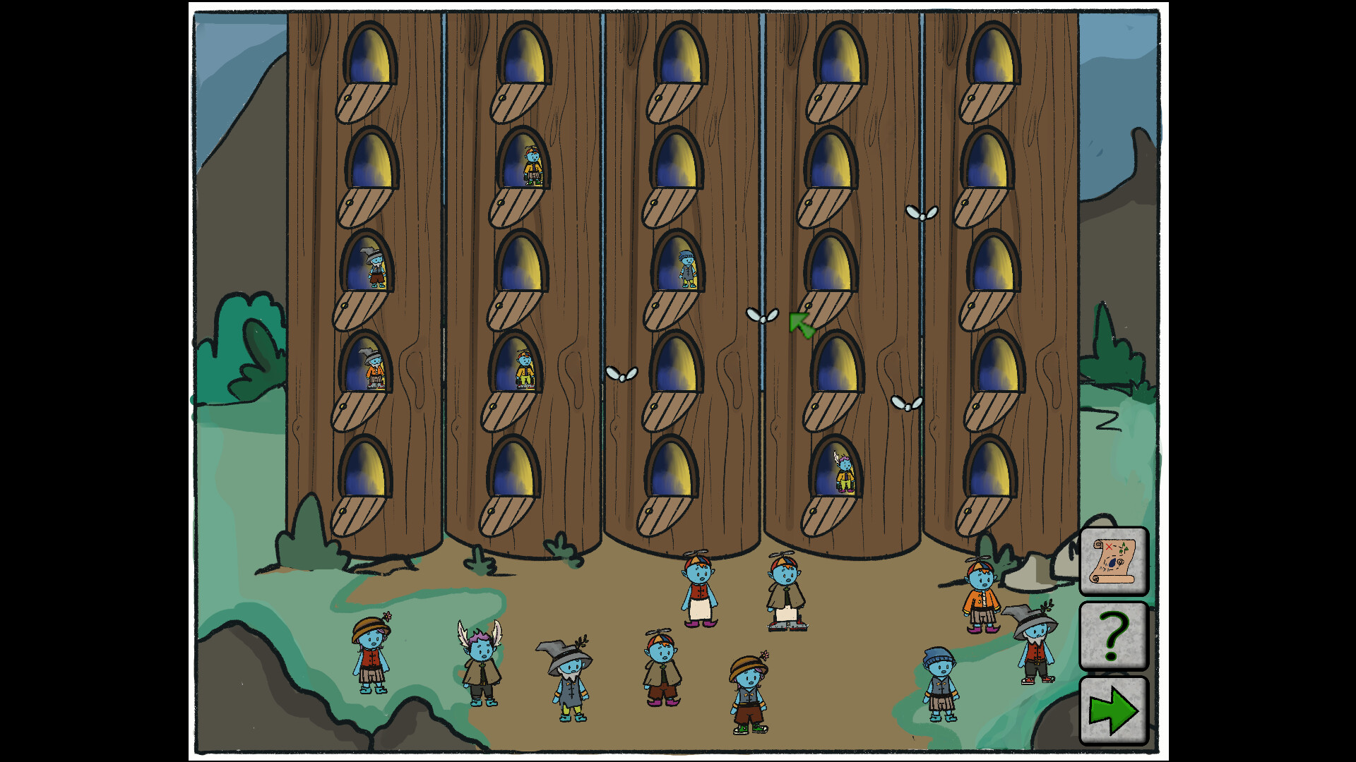 The purpose of this game is to lead a group of 16 Newbinis from where they're being held to a beautiful valley where they can live in peace. You do this by solving logic puzzles based on the group of Newbinis you decided to take as well other combinatorics puzzles.