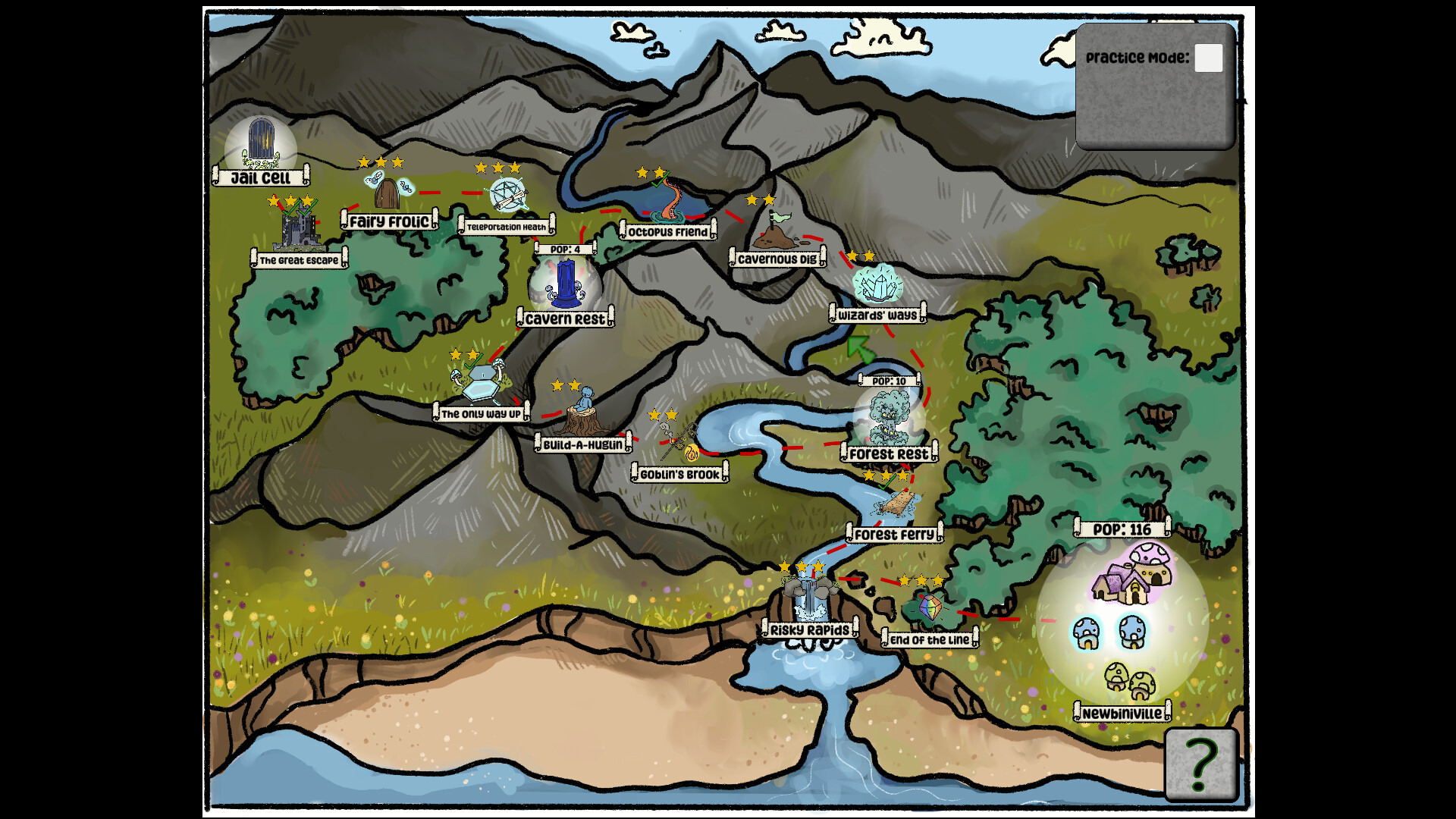 Escort a group of Newbinis as they escape captivity and head to a peaceful valley by solving various logic puzzles as you traverse the breadth of the land. The puzzles are related to the group's composition as well as other combinatorics ideas.