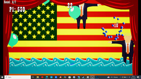 2d shooter game where mission is to shoot items to collect points and avoid shooting politics
