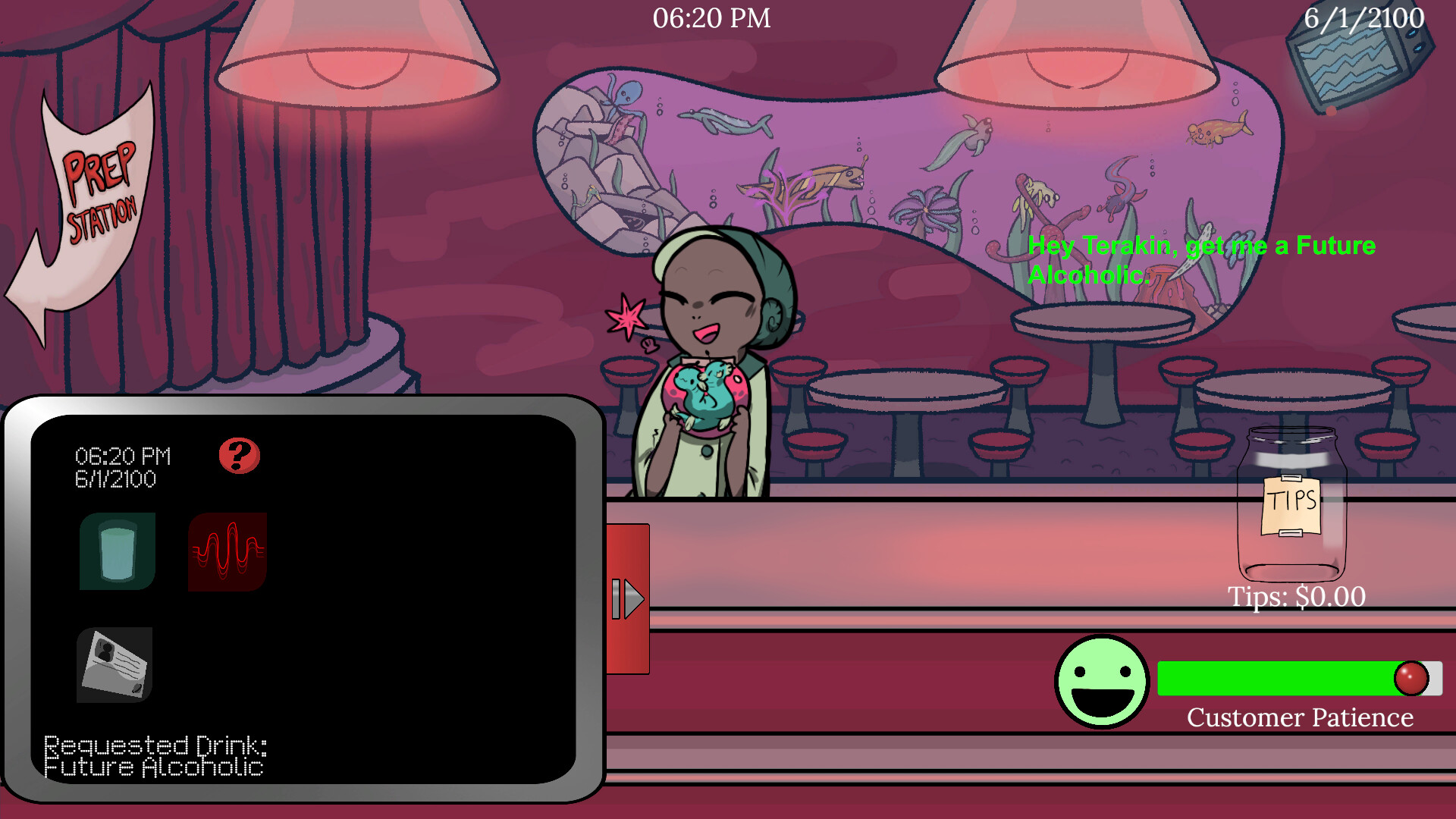 The Red Shift is an engaging bartending game where you actively interact with patrons to craft and serve their drinks.