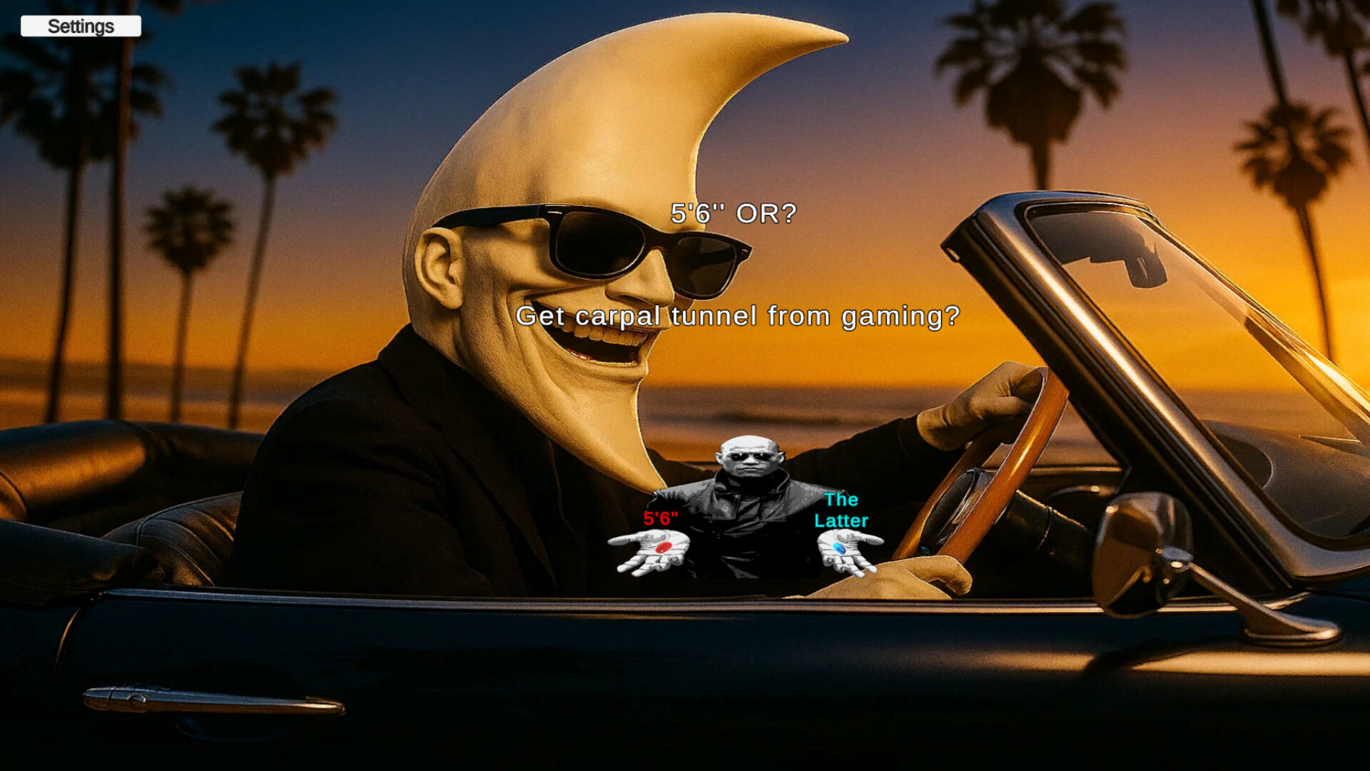 5'6" is a chaotic and hilarious “Would You Rather?”–style decision game designed around one simple concept: you’re not 5'6", and thank goodness. Every question pushes you into strange hypotheticals, absurd dilemmas, and uncomfortable choices as you navigate a world where being 5'6" is the ultimate curse.