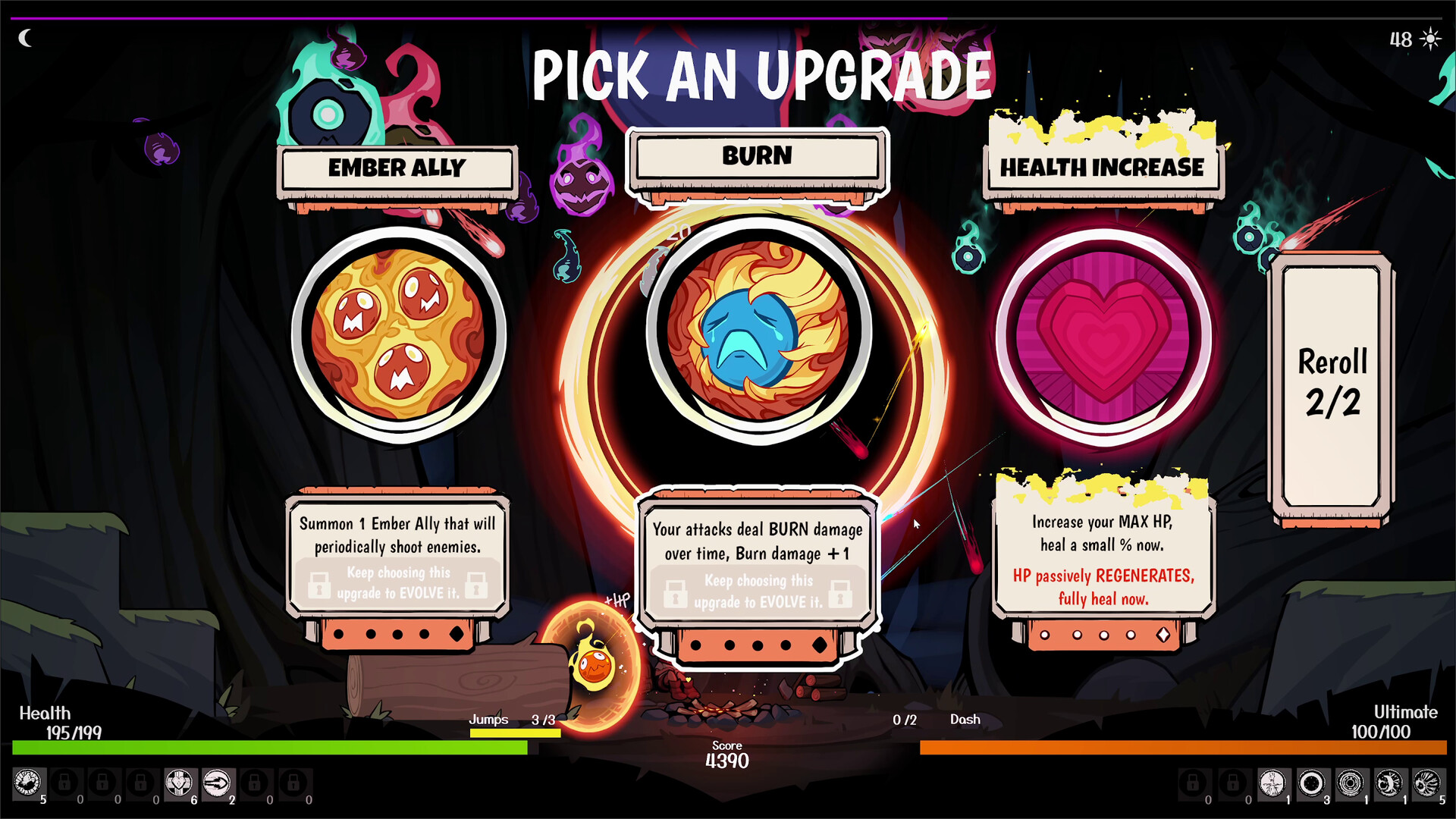 Bonfire Barrage is a compact roguelike inspired by Seraphs Last Stand, built around fast 30-minute runs, game-breaking builds, and glorious chaos.