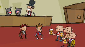 Ben There, Dan That! - это маленькая, минималистичная и хулиганская адвентюра. На флеш-сайтах подобного полно. Сама по себе ценности не представляет - "чисто поржать", потому что авторы стебутся над адвентюрными клише, а заодно и принципиально прибивают всех основных НПС, с которыми сталкиваются наши герои. Ну, по приколу же! Но она является прологом к игре Time Gentlemen, Please!, которая начинается там, где кончается "Бен и Дан" и представляет из себя уже вполне себе полноценную адвентюру. Графика сильно в качестве, правда, не прибавляет, зато безбашенного панковского юмора становится поменьше (но всё ещё достаточно), а головоломки, общий состав и количество локаций уже сильно-сильно не того класса, что в первой игре. Судя по первой части, я ожидал полного треша - а оказалась вполне себе хорошая и умная адвентюра. Не "10 из 10", конечно, но на 7,5 баллов честно отрабатывает. P.S. Почему-то по отдельности эти игры не только не продаются, а даже и не рецензируются. У обеих нажатие кнопки "написать рецензию" приводит в одно и то же место. Поэтому я их не смог бы разделить, даже если бы захотел. P.P.S. Автоматический антимат Стима ещё хуже Иксбитного. :/