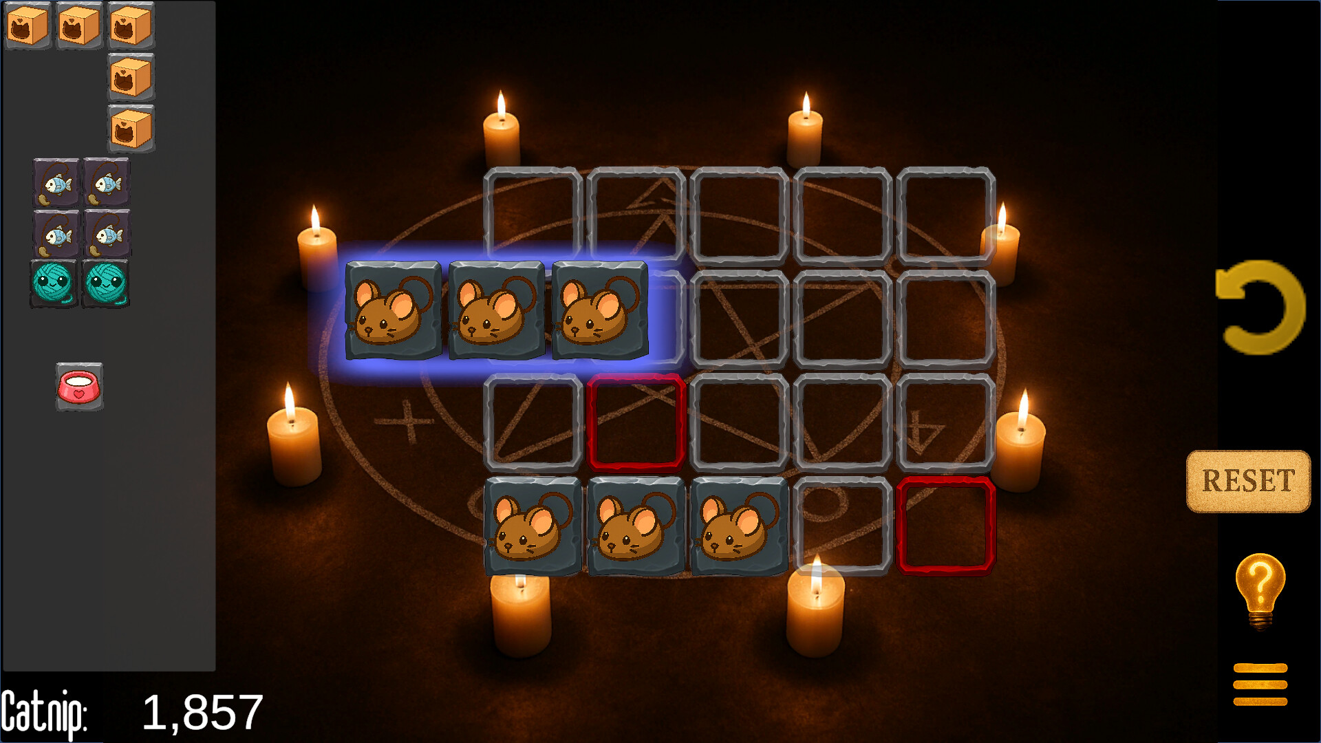 In this 2D puzzle game summon cute furry friends by arranging spell pieces in a way that fills the grid. Kael's Cat Summoner comes with near infinite procedurally generated levels and 40 different cats to summon.