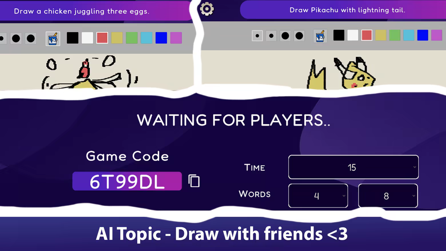 Draw your best (or worst) interpretation before time runs out! Start a room, invite your friends (or total strangers), and get ready for a round of ridiculous AI-generated prompts — or create your own with unlimited custom topic!