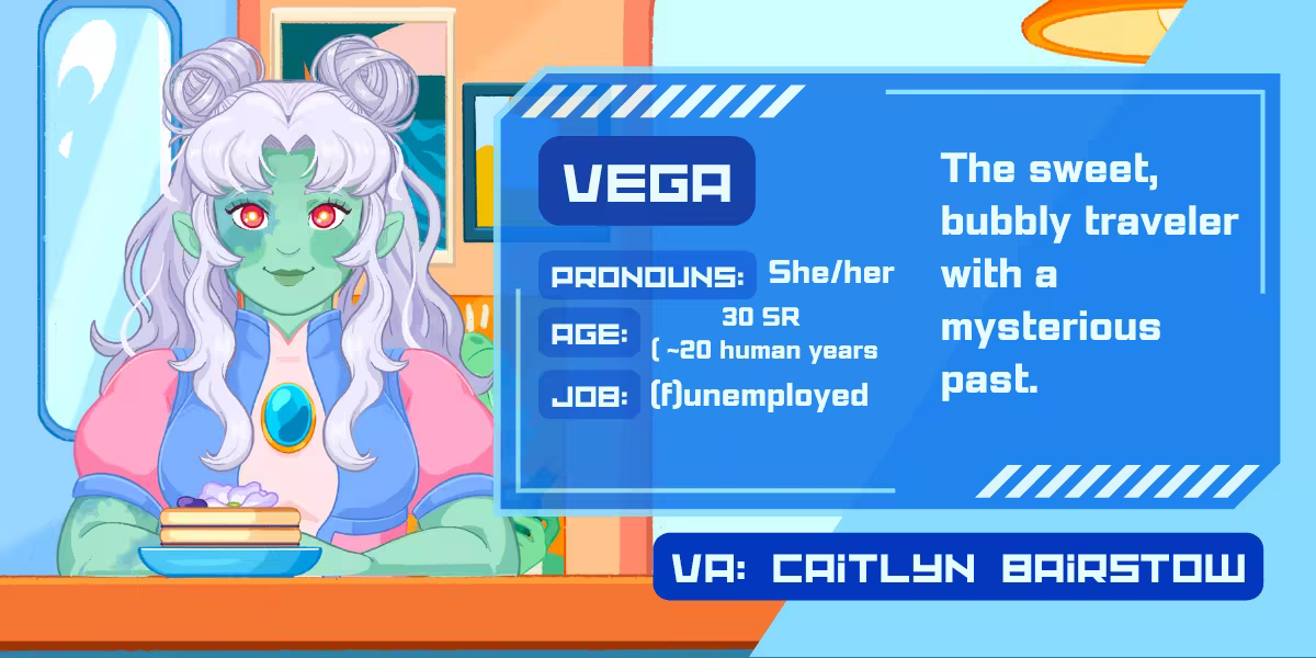 An inclusive, cozy, sci-fi cooking/dating sim about making friends, finding love, and running a diner in deep space.
