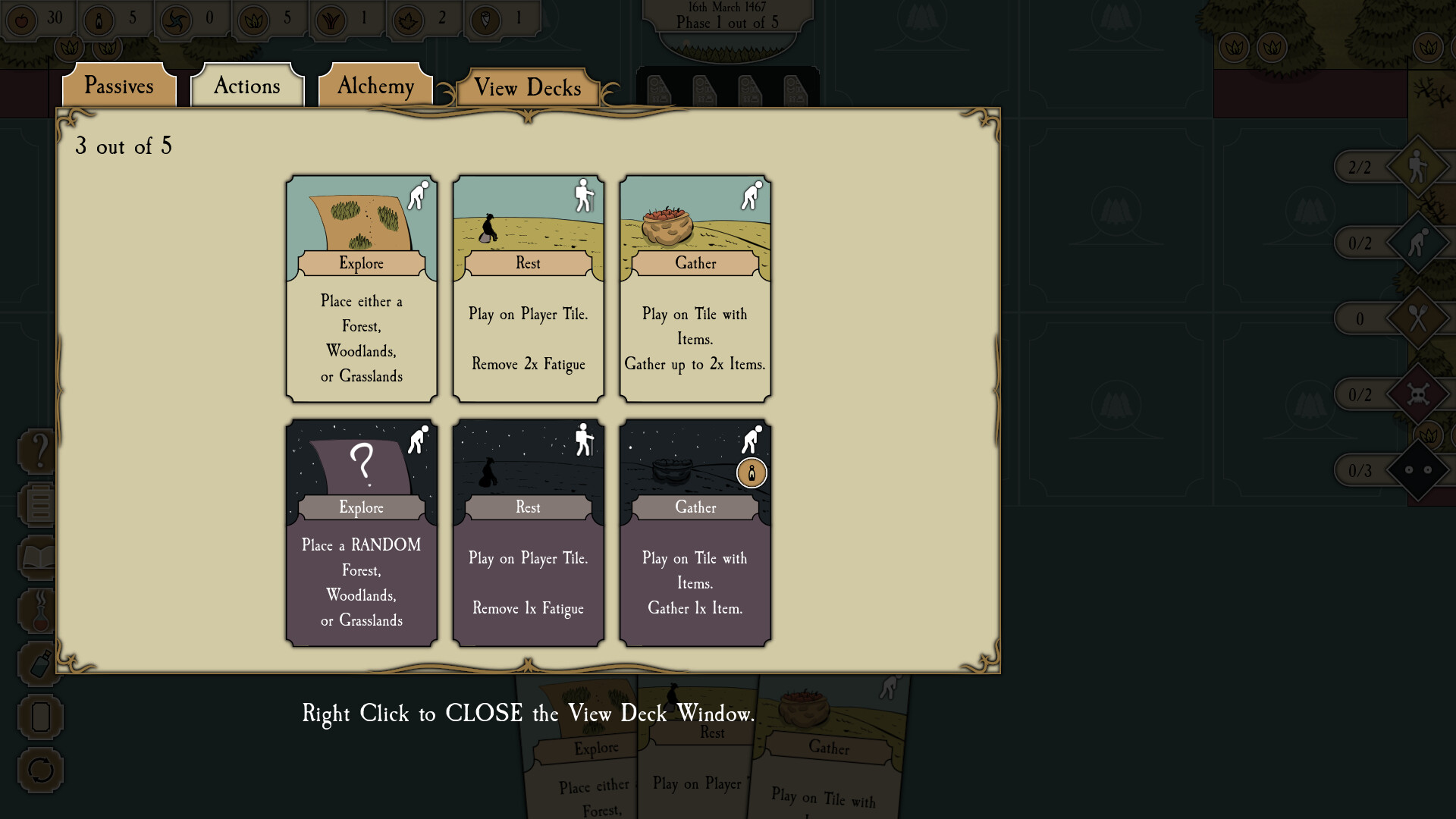 Use cards from THREE different decks to explore, gather herbs, rest and create potions. Build your decks by adding Passive, Action or Alchemy cards, or replace existing cards to help you in your journey.