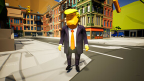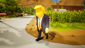 3rd person walking game where player controls president Trump in fictional world. Trump mission is to collect his favorite crypto, shitcoin to get steam achievements and main mission is to find birthday cake which is hidden somewhere in big open world. Player character need avoid democratic flags which kills player immediately and spawn him to starting location. So can you find all items and finish this big open world walking and surviving game.