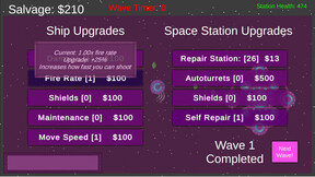 Battle through waves of human ships, keep your spacecraft in one piece, upgrade your ship to absurd levels, and protect your space station. Upon death, you'll receive retrofit options that change the gameplay experience for your next space battle.