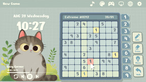 Фанатам судоку и котиков посвящается! Уровни разной сложности, поэтому скучно не будет. Саундтреки можно самому выставлять и еще менять котиков на экране. Особой трудности игра не представляет (тут еще подсказки есть, не переживайте).